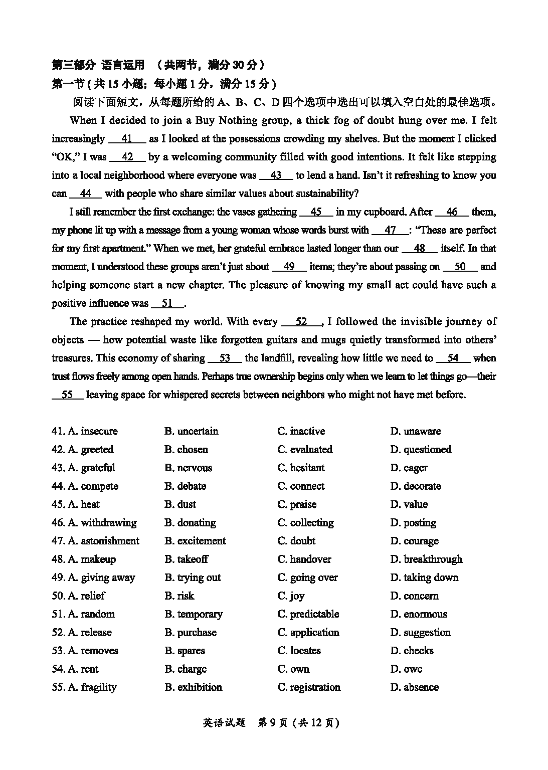 包头市2025届高三下学期4月二模英语试题质量较高,题型多样,将作为考察考生对相应考点的掌握程度,考后将及时整理试题及答...