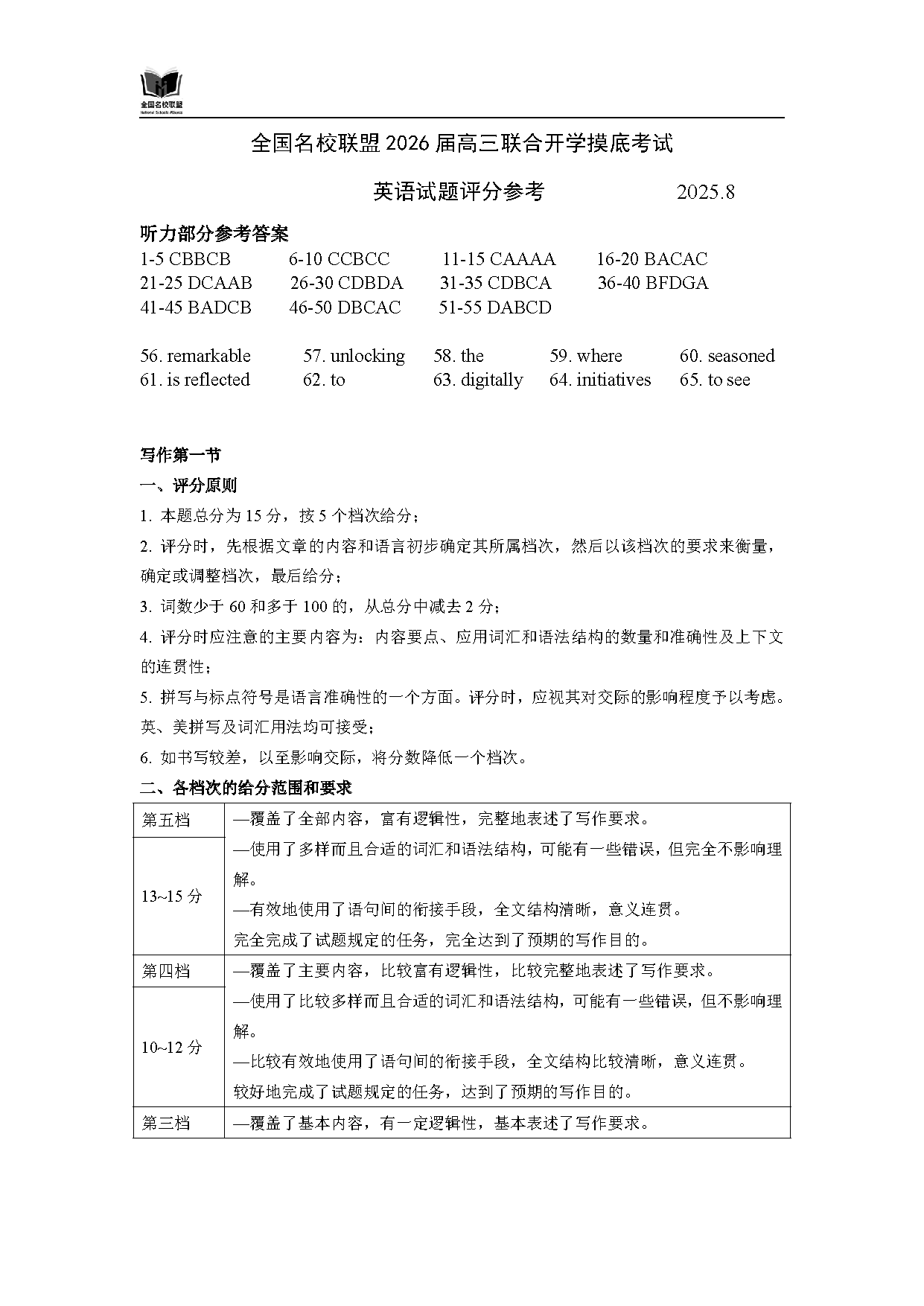 内蒙古-全国名校联盟2026届高三联合开学摸底英语试题质量较高,题型多样,将作为考察考生对相应考点的掌握程度,考后将及时整理试题及答案解析相关信息,以供考生学习交流!