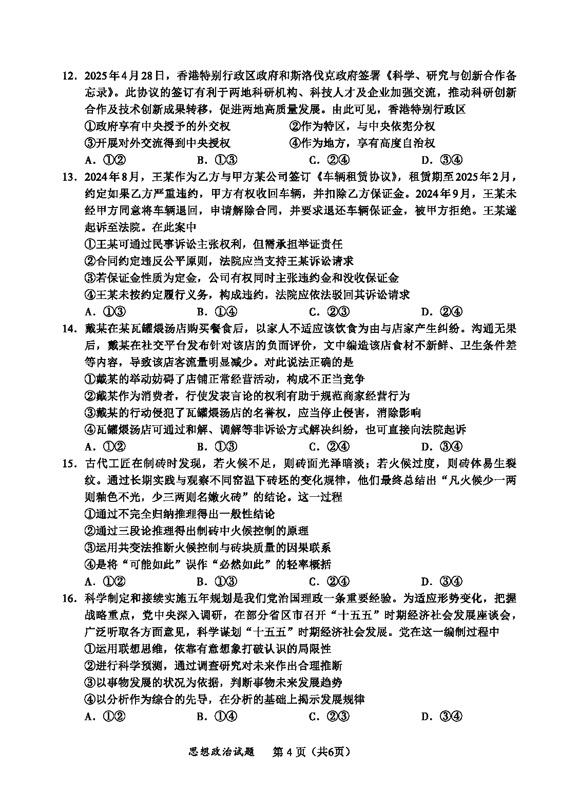 包头市2025届高三下学期4月二模政治试题质量较高,题型多样,将作为考察考生对相应考点的掌握程度,考后将及时整理试题及答...