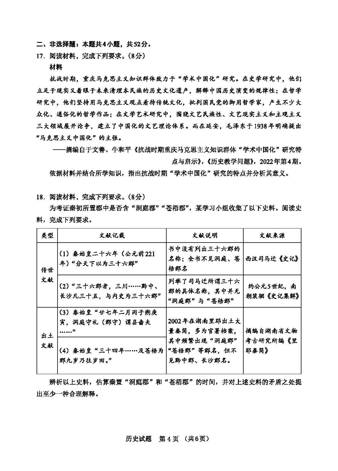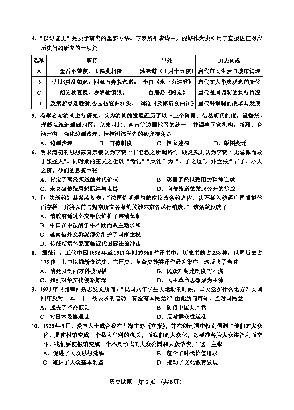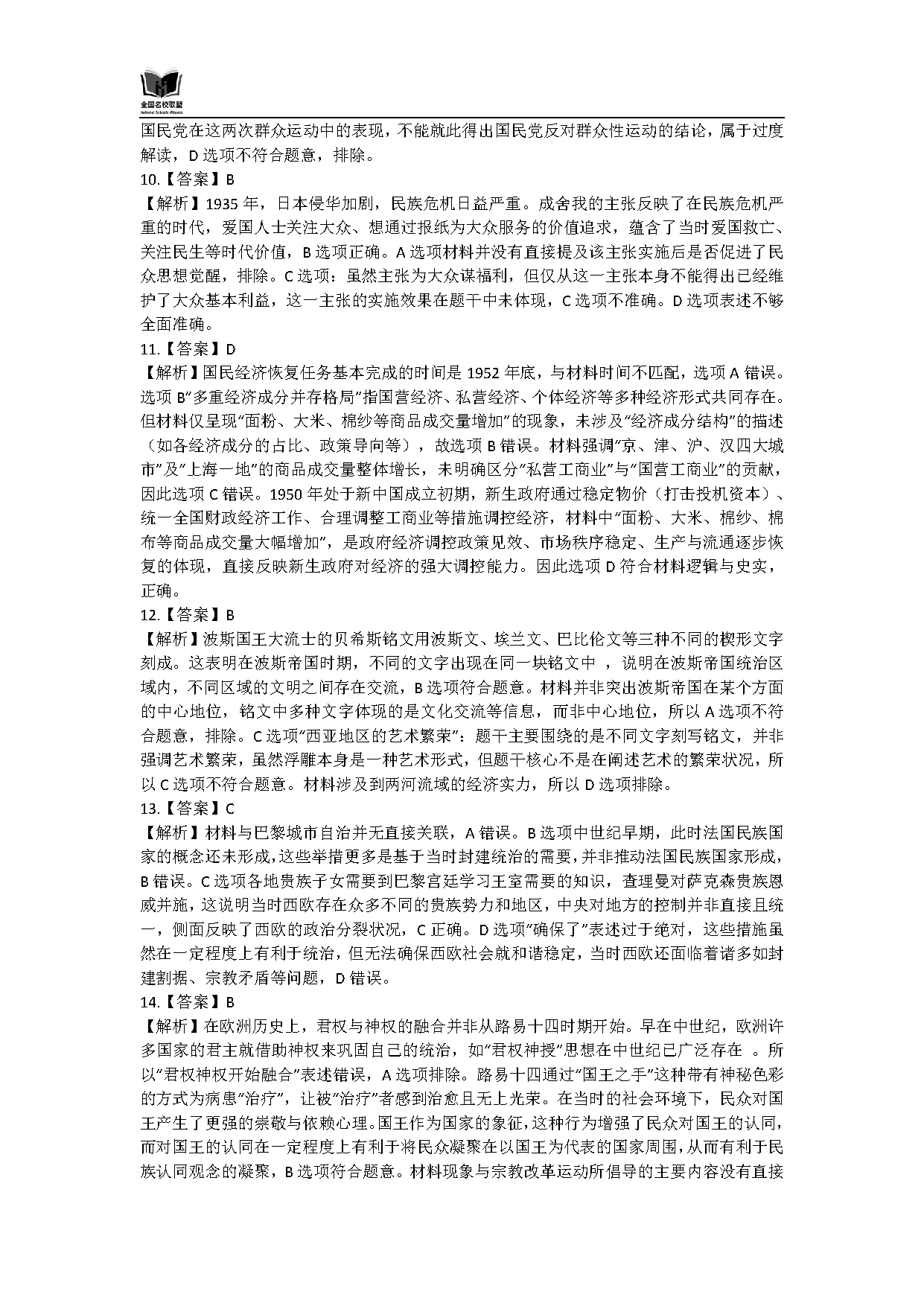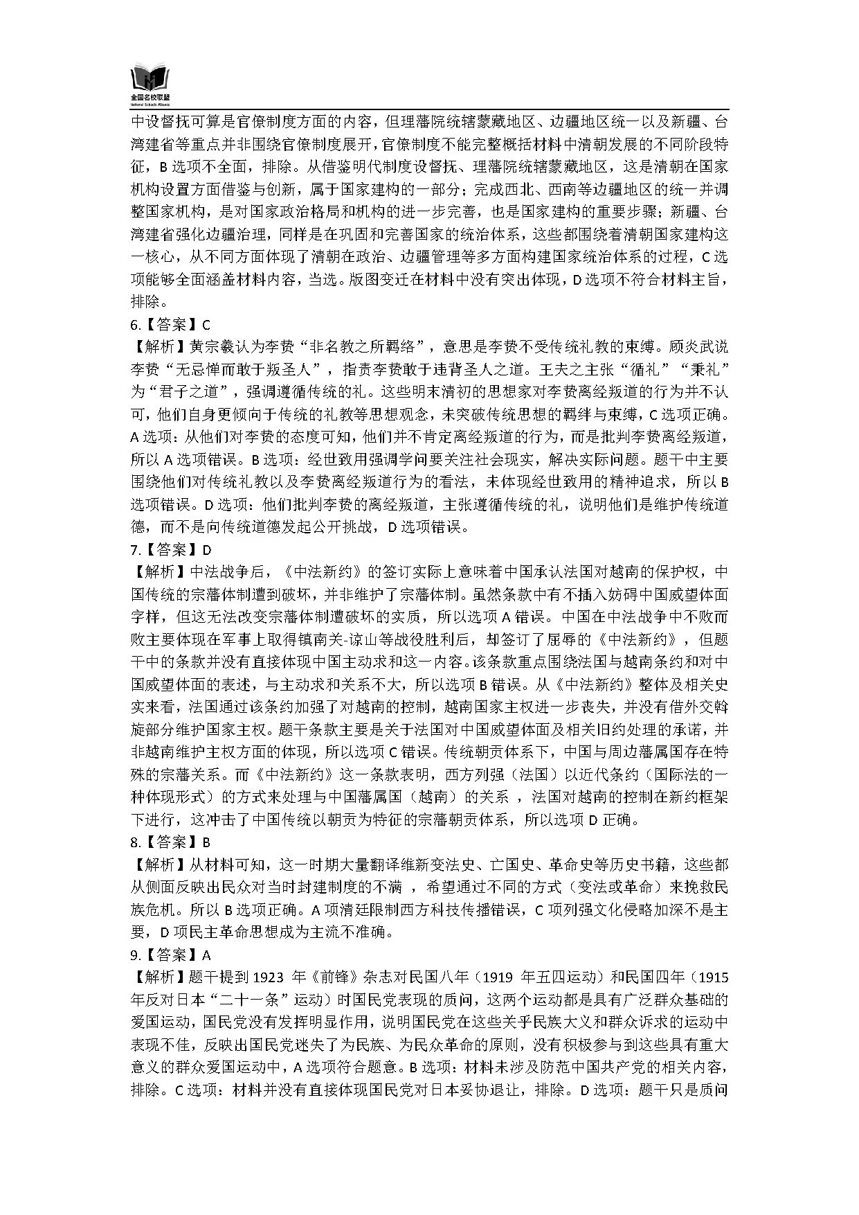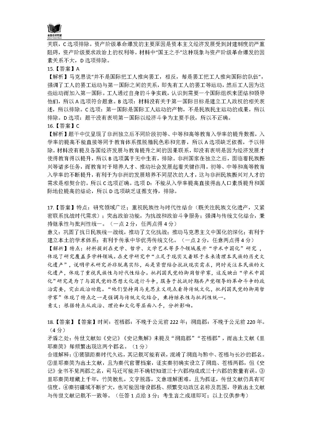 历史试题及答案解析