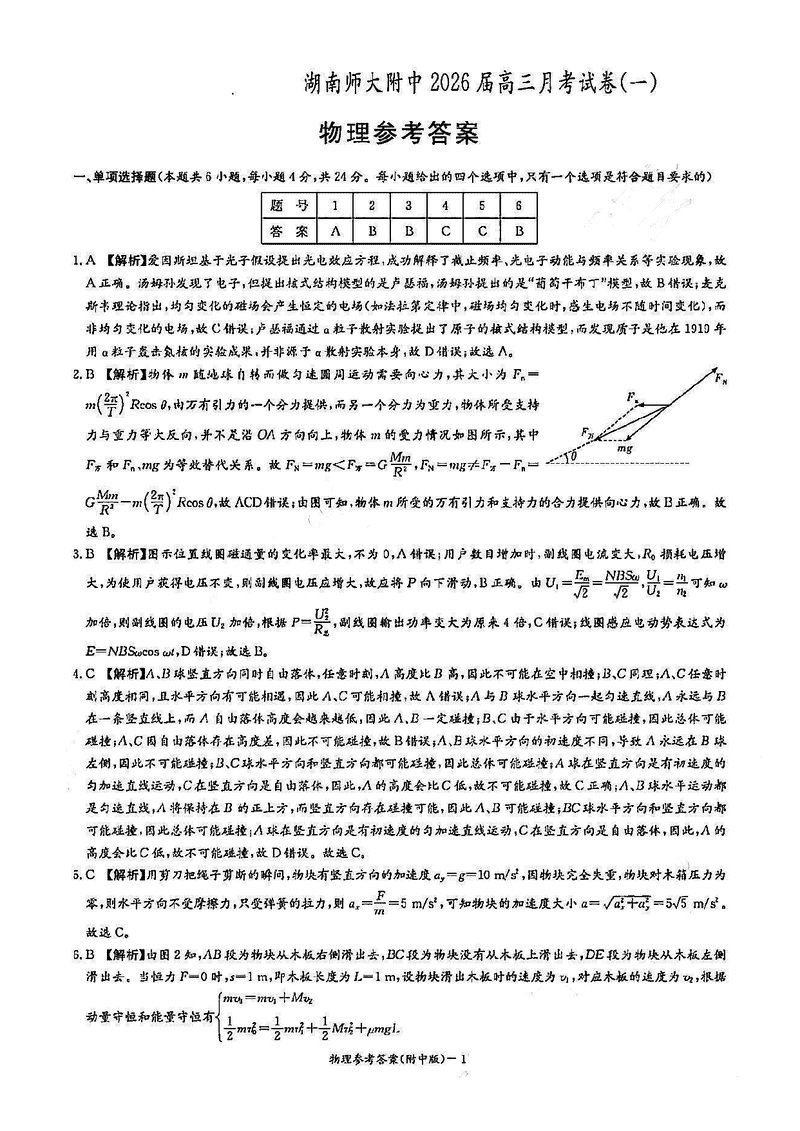 湖南师大附中2026届高三上学期8月月考(一)物理试题质量较高,题型多样,将作为考察考生对相应考点的掌握程度,考后将及时整理试题及答案解析相关信息,以供考生学习交流!
