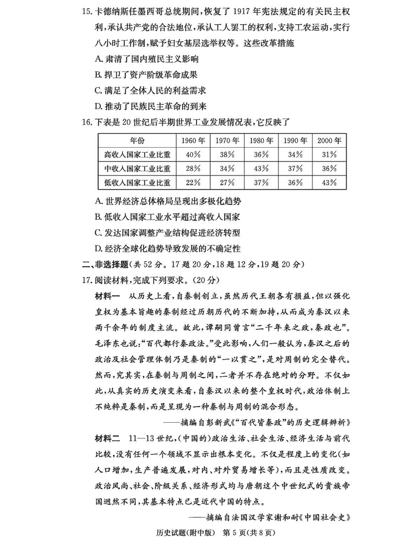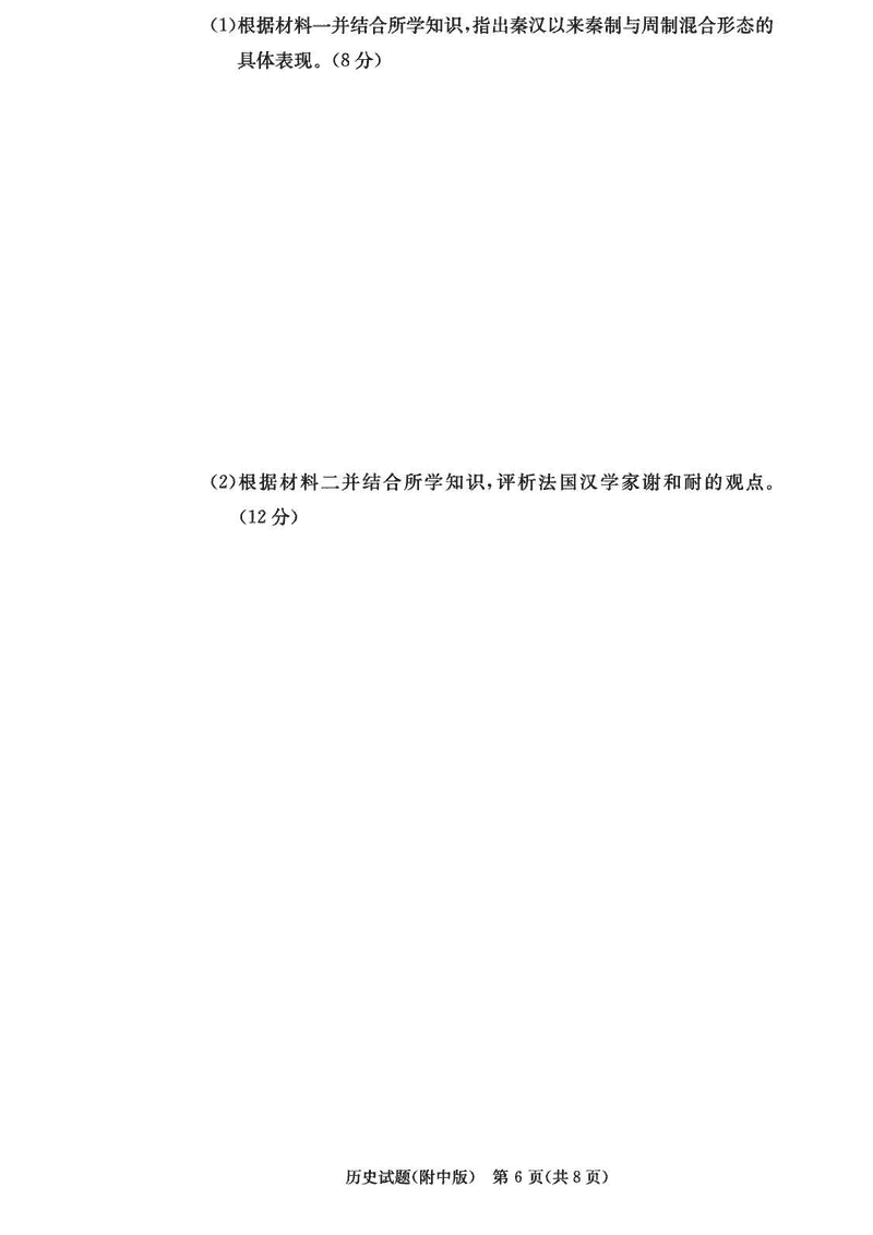 湖南师大附中2026届高三上学期8月月考(一)历史试题质量较高,题型多样,将作为考察考生对相应考点的掌握程度,考后将及时...