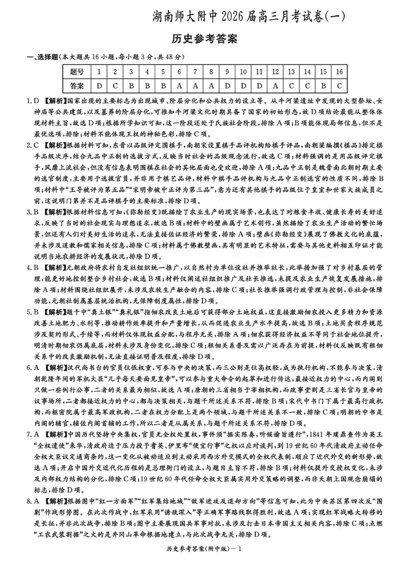 湖南师大附中2026届高三上学期8月月考(一)历史试题质量较高,题型多样,将作为考察考生对相应考点的掌握程度,考后将及时整理试题及答案解析相关信息,以供考生学习交流!