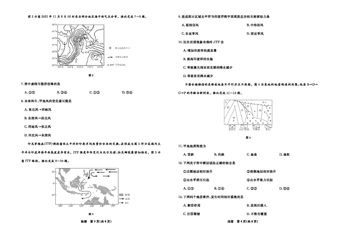 福建-全国名校联盟2026届高三联合开学摸底地理试卷及参考答案