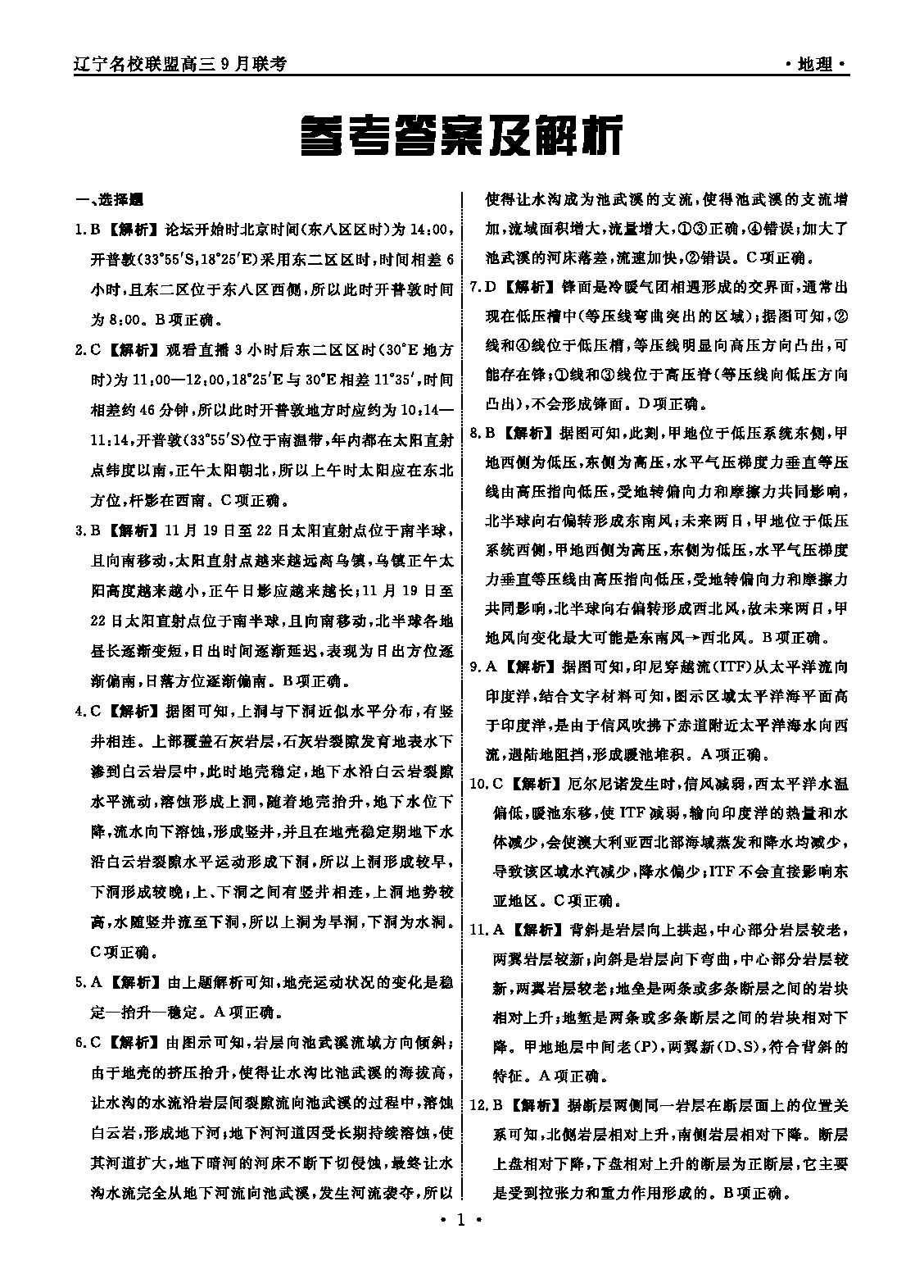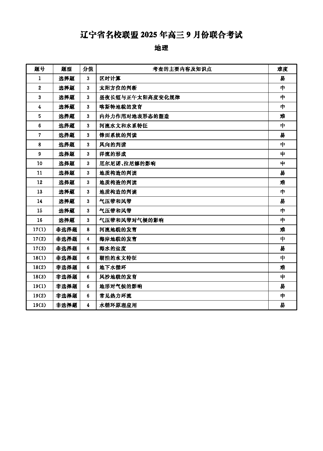 辽宁名校联盟2025年高三9月联考地理试题质量较高,题型多样,将作为考察考生对相应考点的掌握程度,考后将及时整理试题及答...