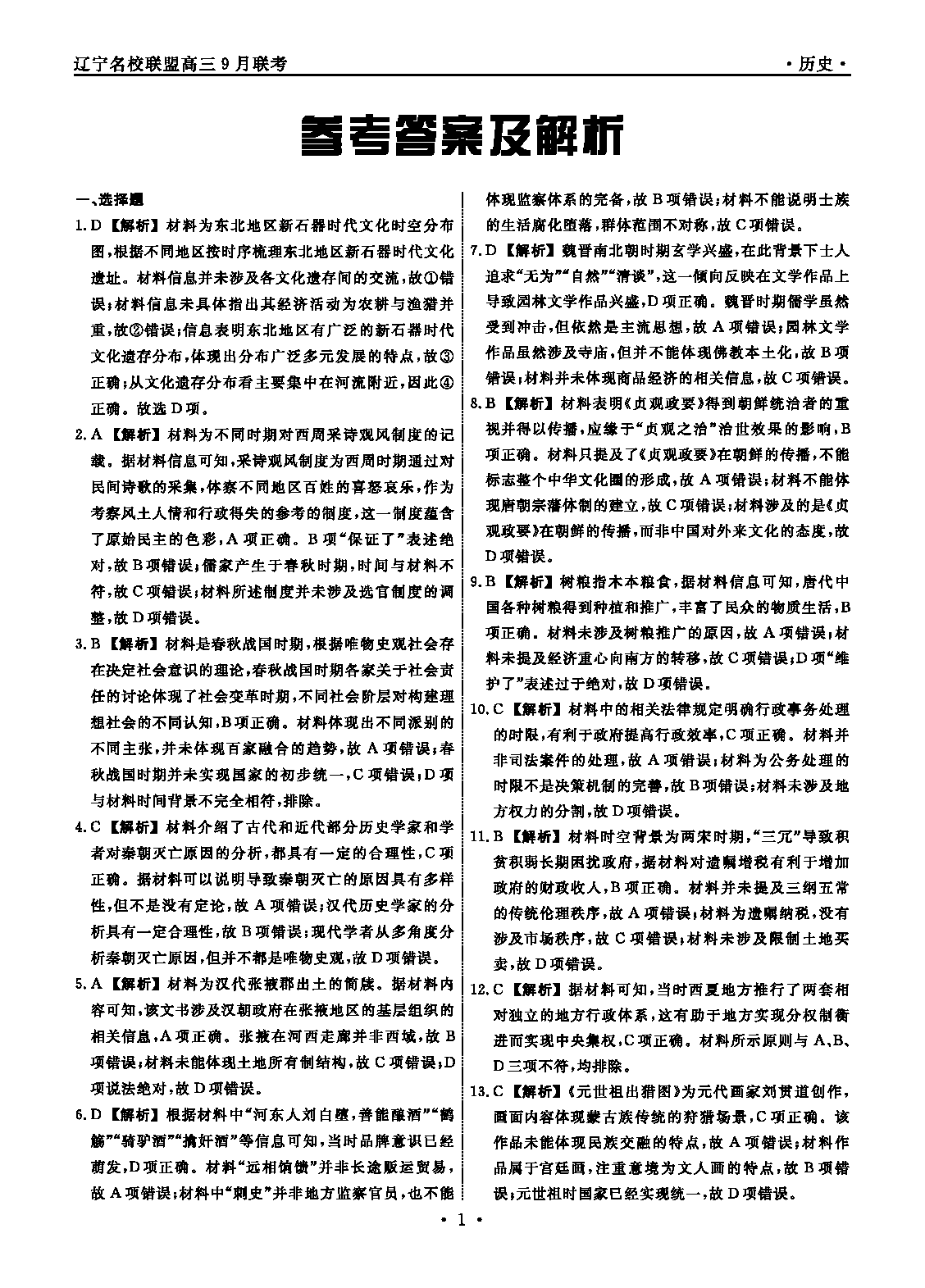导读辽宁名校联盟2025年高三9月联考历史试题质量较高,题型多样,将作为考察考生对相应考点的掌握程度,考后将及时整理试题及答案解析相关信息,以供考生学习交流!历史试题及答案解析
