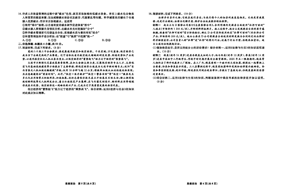 辽宁协作校2025届高三第二次模拟考政治试题质量较高,题型多样,将作为考察考生对相应考点的掌握程度,考后将及时整理试题及...
