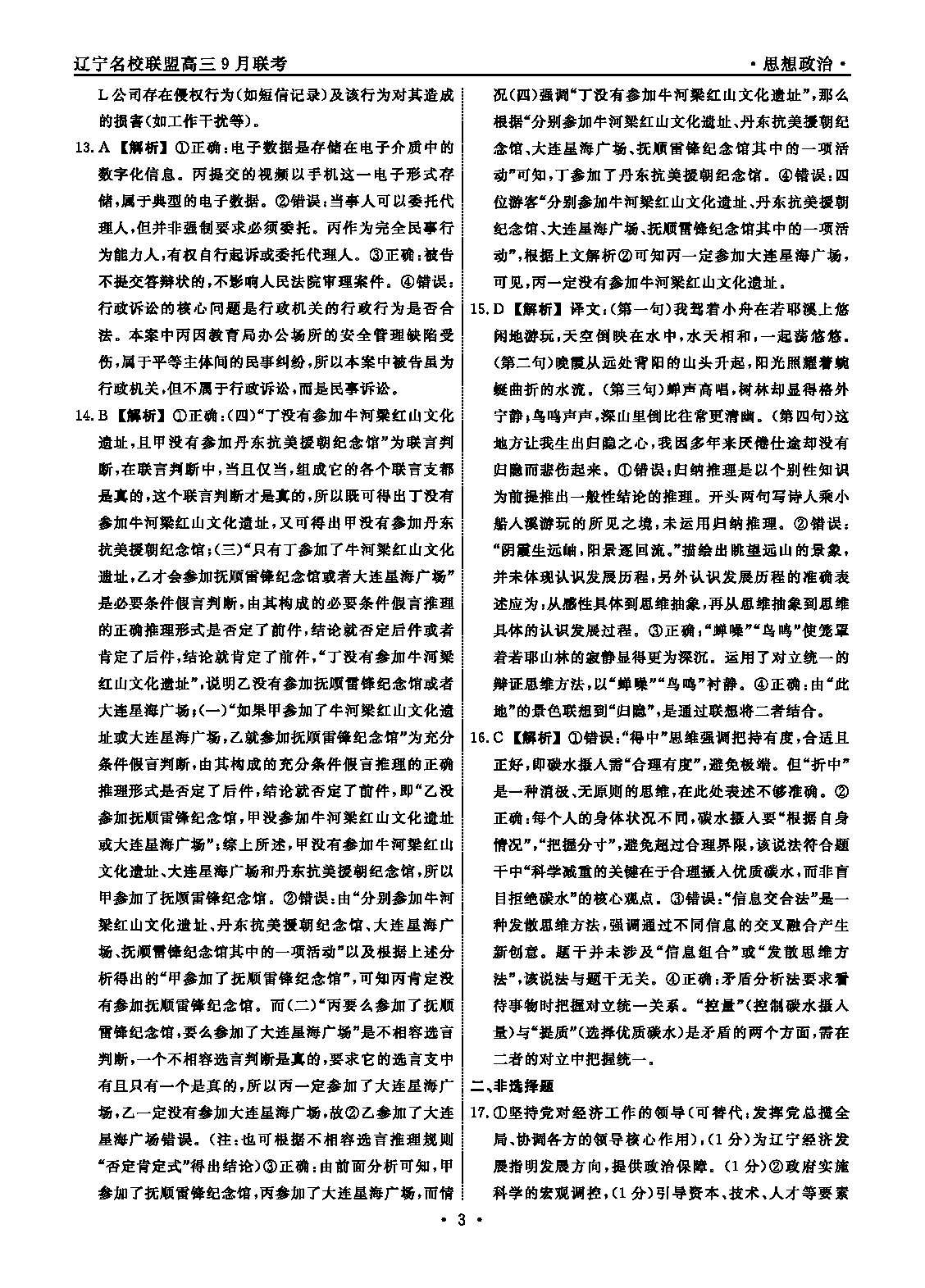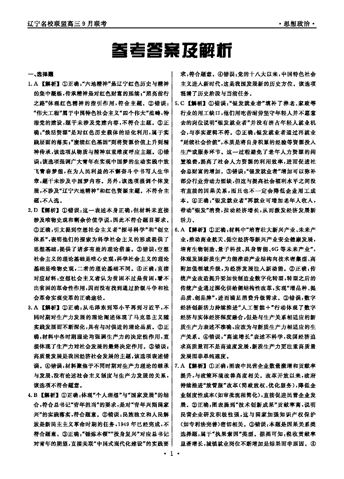 导读辽宁名校联盟2025年高三9月联考政治试题质量较高,题型多样,将作为考察考生对相应考点的掌握程度,考后将及时整理试题及答案解析相关信息,以供考生学习交流!政治试题及答案解析