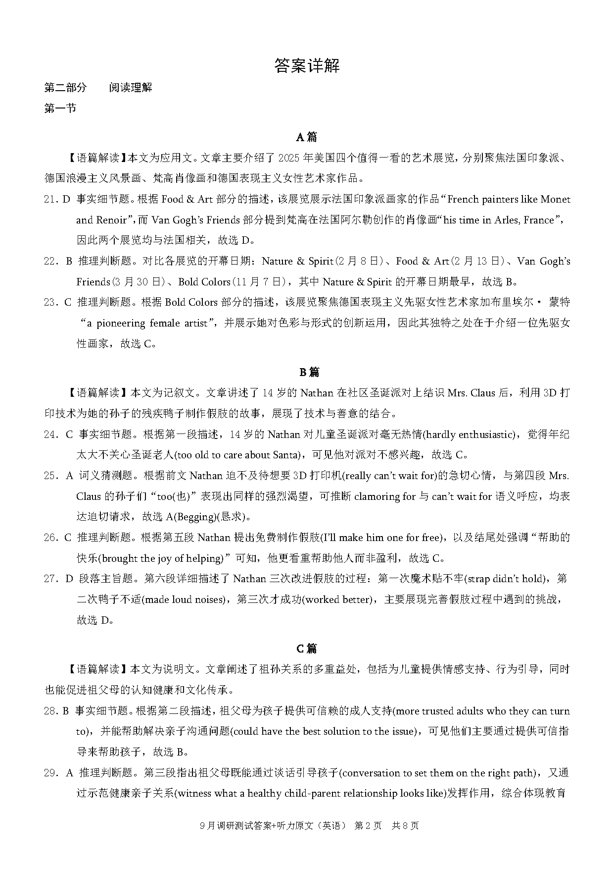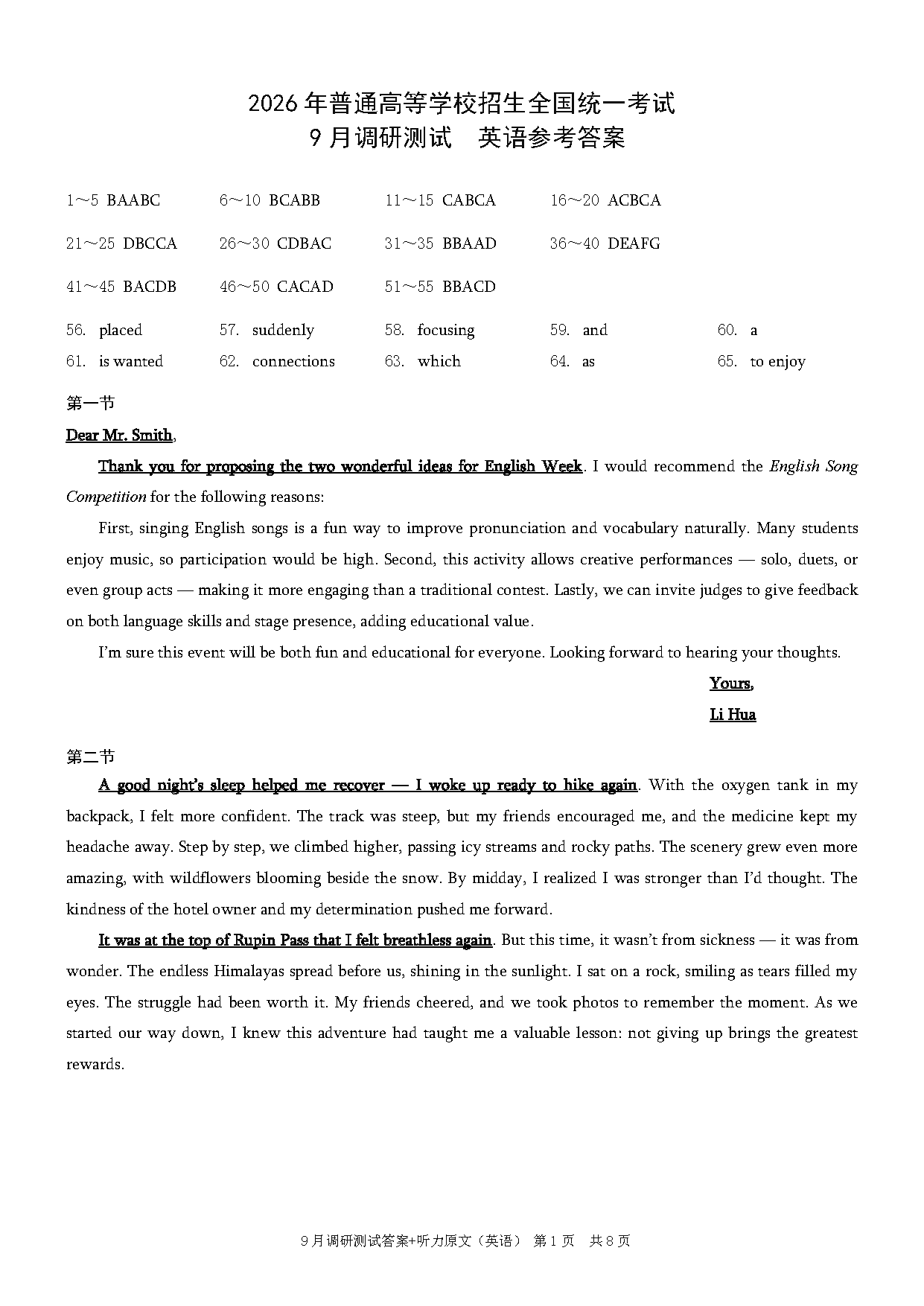 重庆康德卷2026年高三上学期9月调研英语试题质量较高,题型多样,将作为考察考生对相应考点的掌握程度,考后将及时整理试题及答案解析相关信息,以供考生学习交流!
