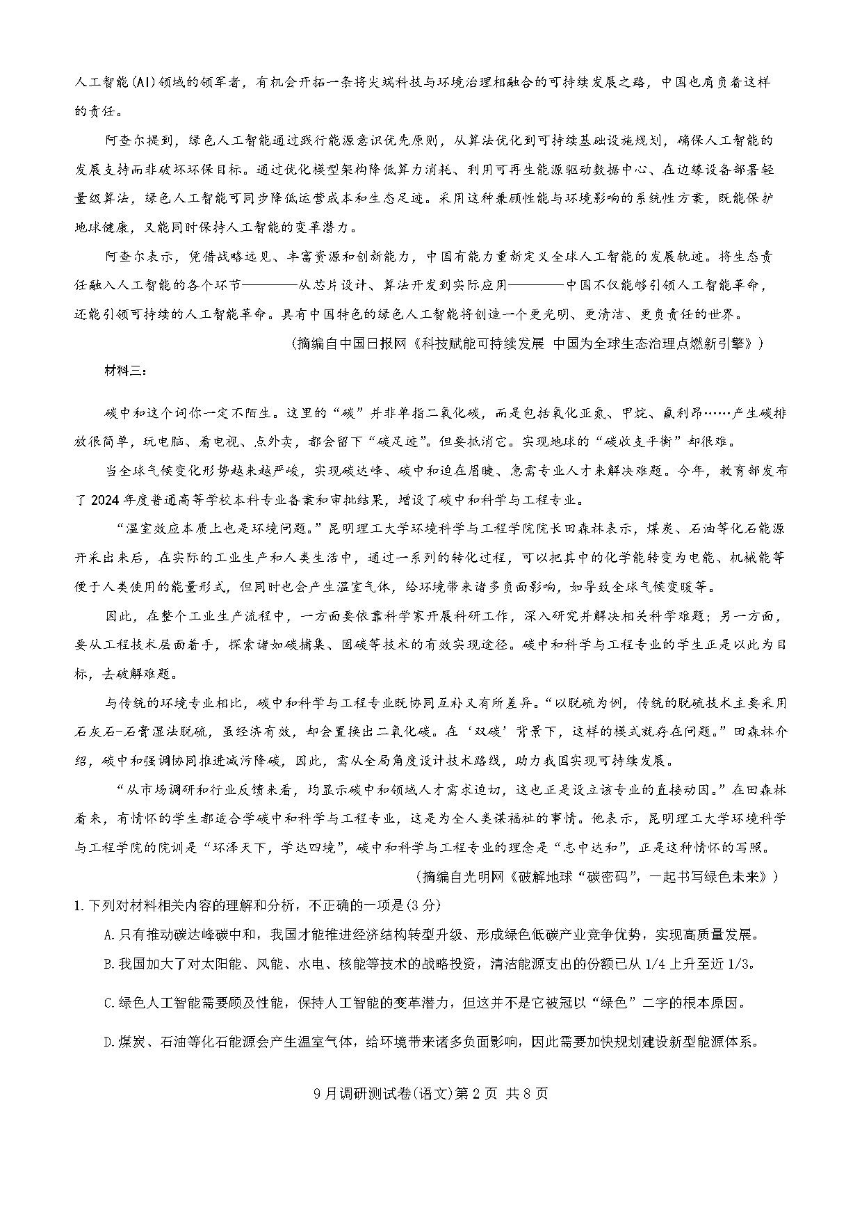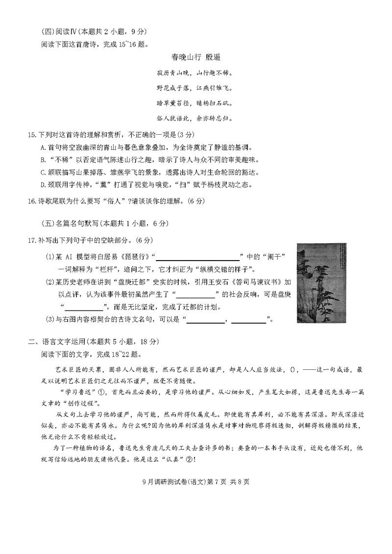 重庆市巴蜀中学2026届高三8月高考适应性月考(一)语文试题质量较高,题型多样,将作为考察考生对相应考点的掌握程度,考后...