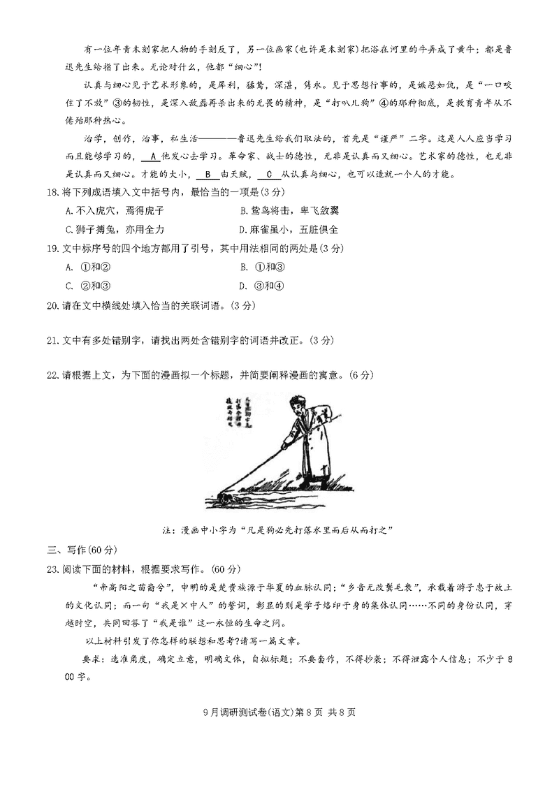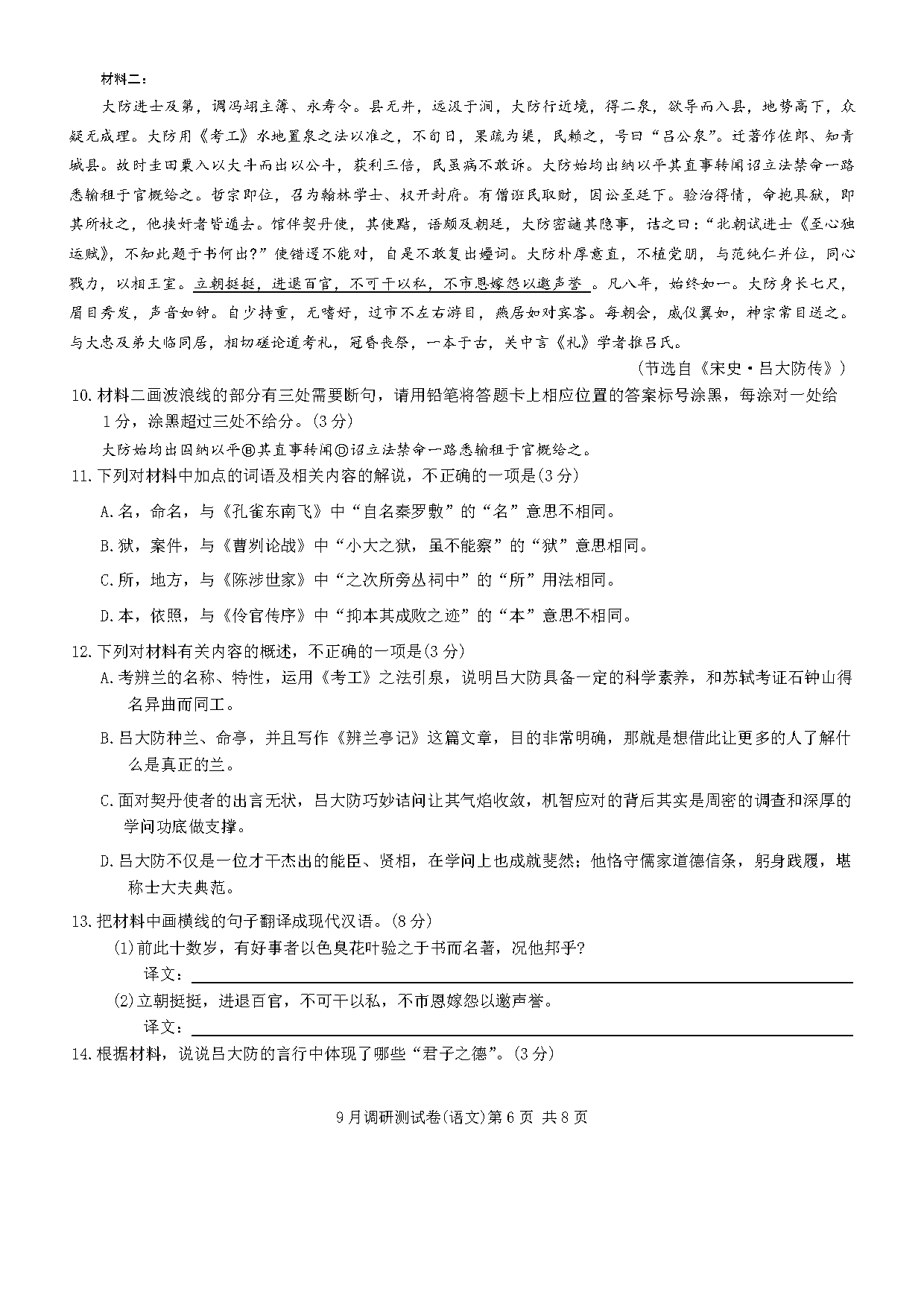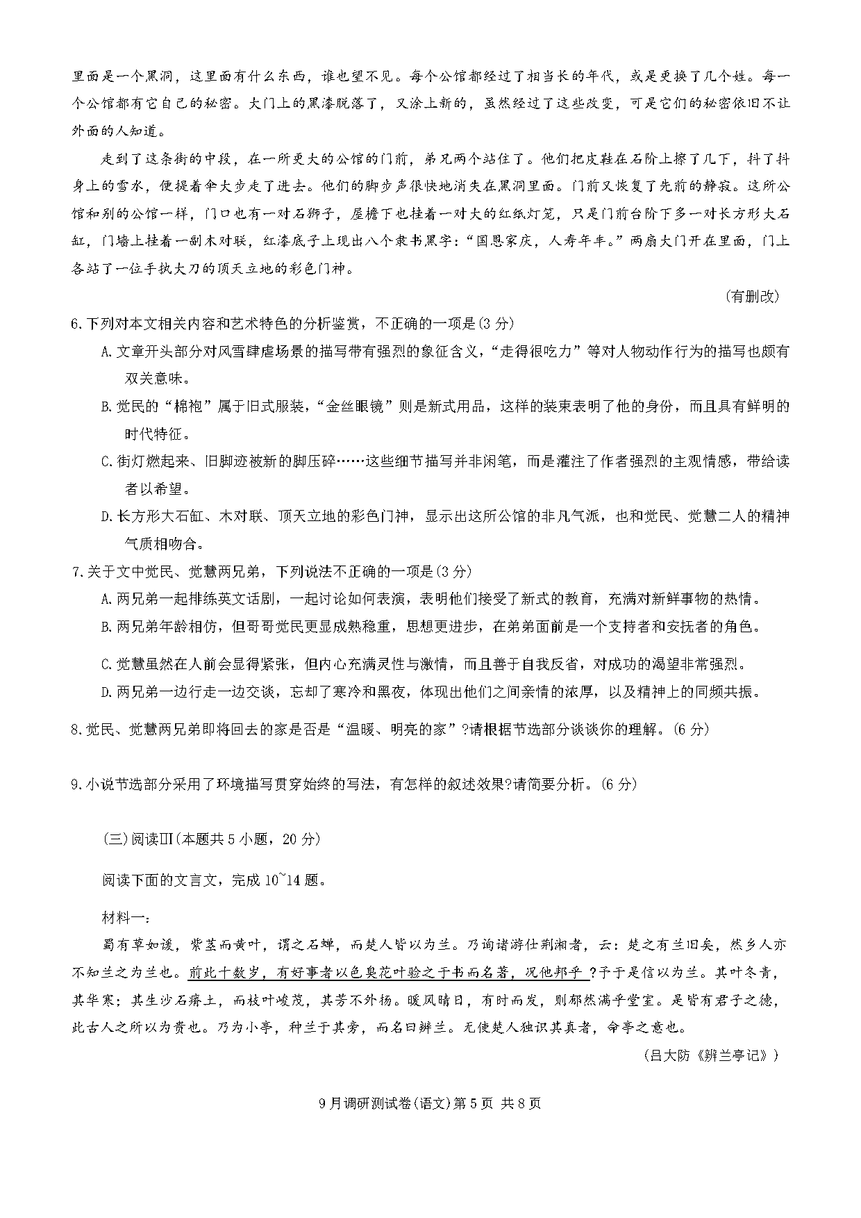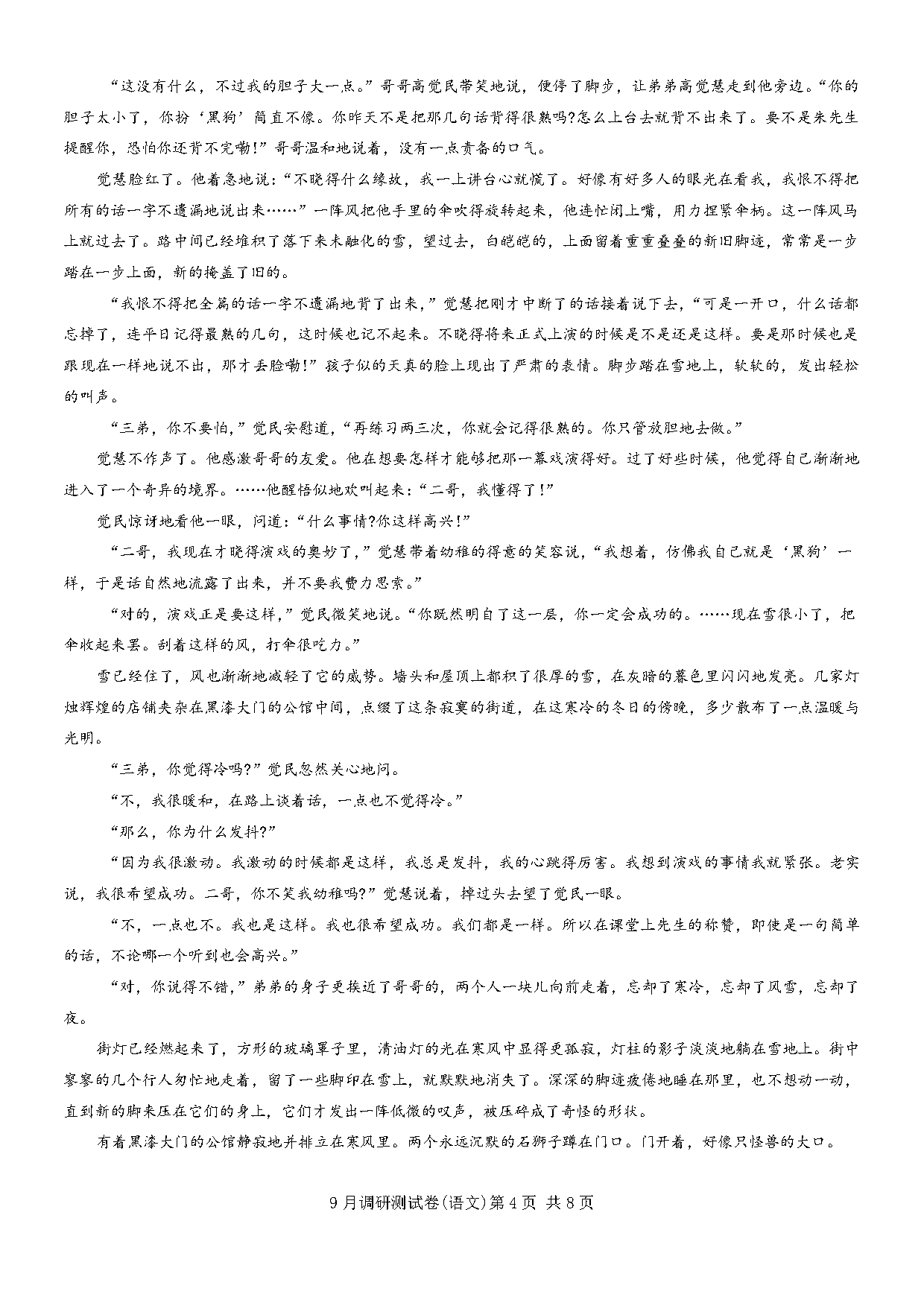 重庆康德卷2026年高三上学期9月调研语文试题质量较高,题型多样,将作为考察考生对相应考点的掌握程度,考后将及时整理试题及答案解析相关信息,以供考生学习交流!