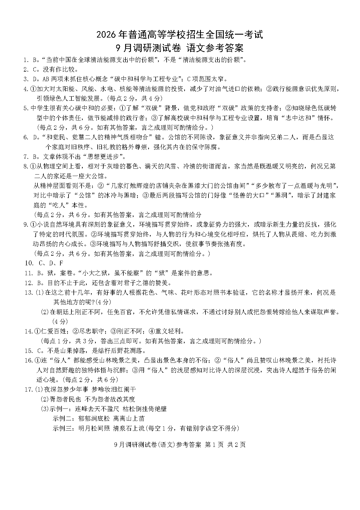 导读重庆康德卷2026年高三上学期9月调研语文试题质量较高,题型多样,将作为考察考生对相应考点的掌握程度,考后将及时整理试题及答案解析相关信息,以供考生学习交流!汇总:重庆康德卷2026年高三上学期9月调研测试试题及答案汇总语文试题及答案解析