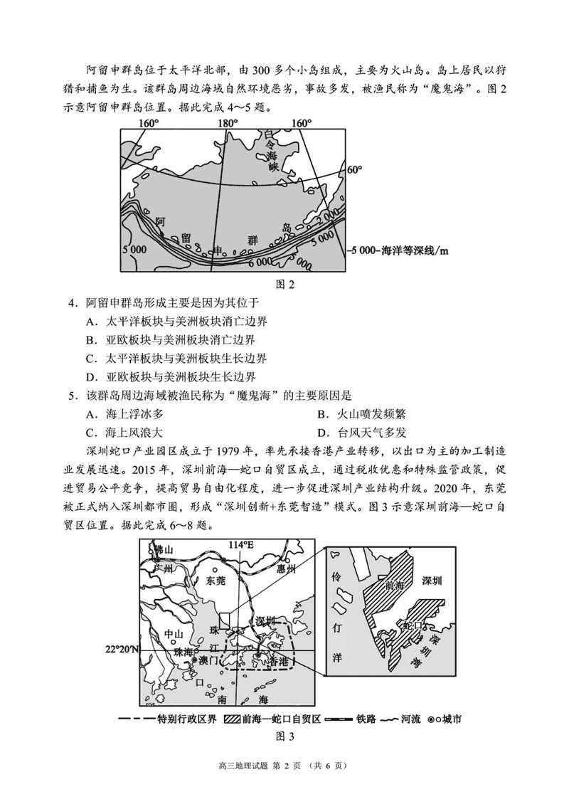 福建-全国名校联盟2026届高三联合开学摸底地理试卷及参考答案