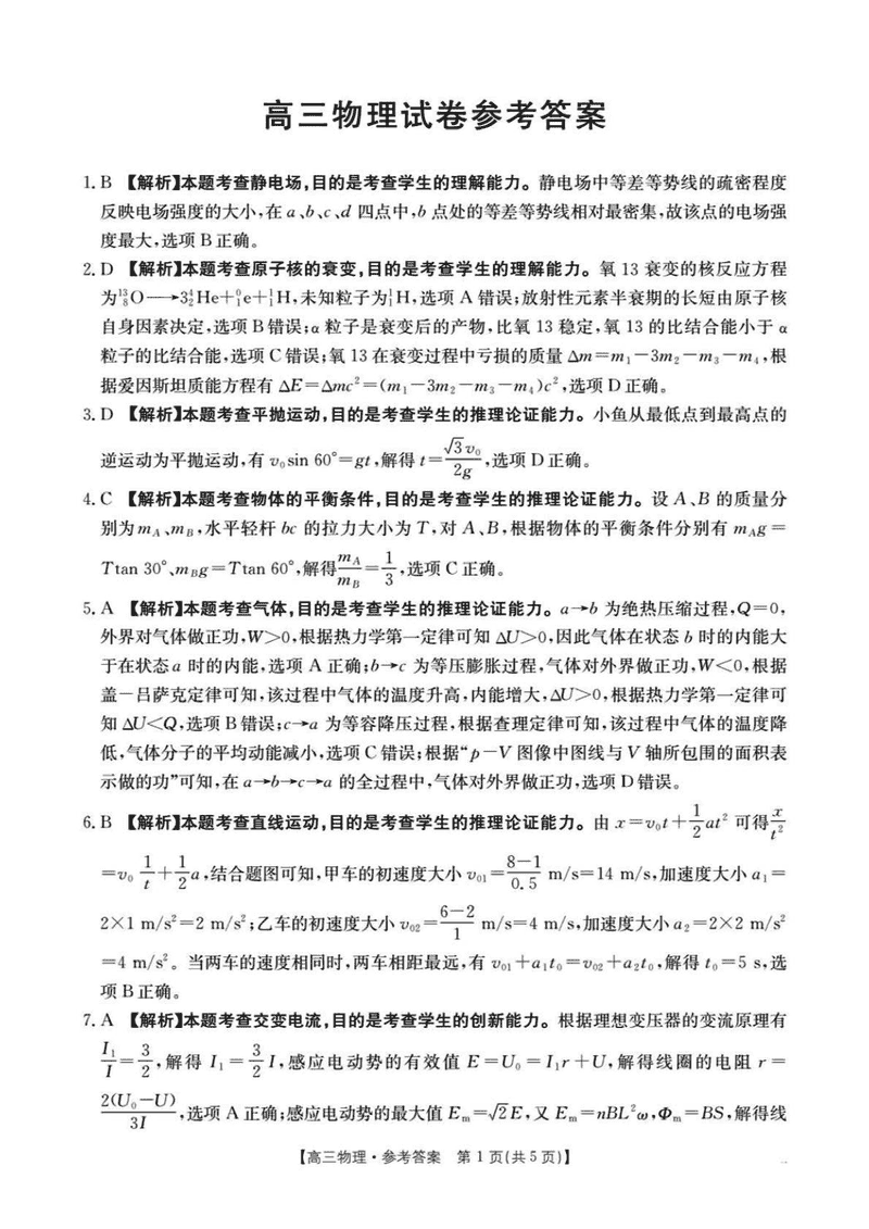 物理试题及答案解析