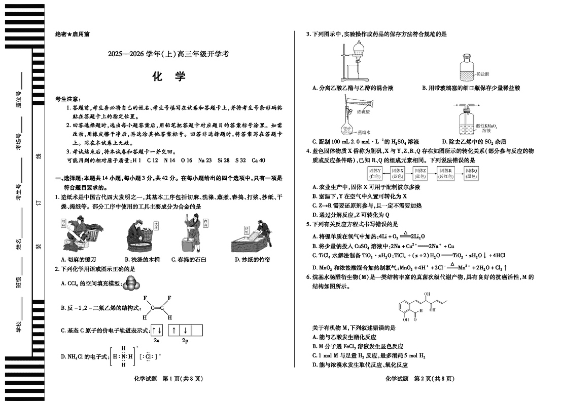 河南天一大联考2025-2026学年高三上学期开学考化学试题质量较高,题型多样,将作为考察考生对相应考点的掌握程度,考后将及时整理试题及答案解析相关信息,以供考生学习交流!