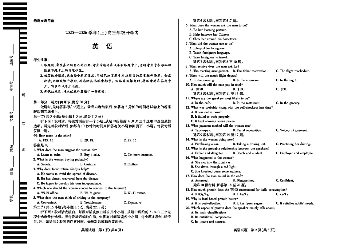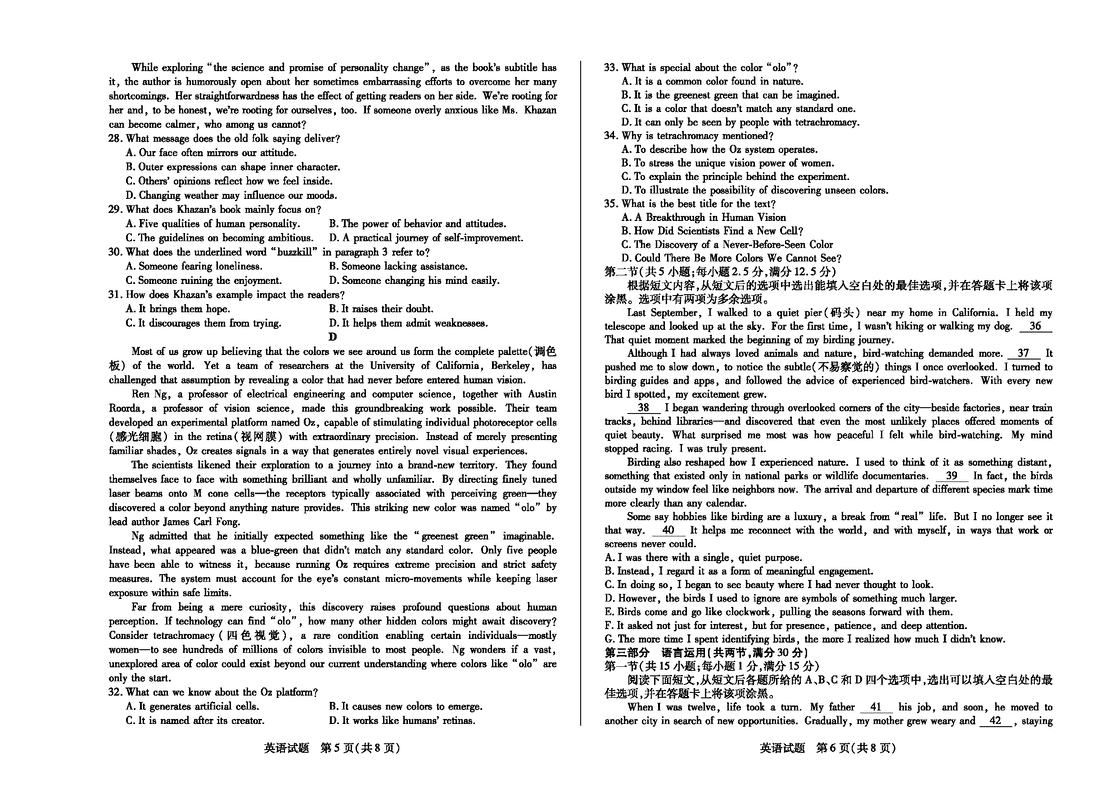 河南天一大联考2025-2026学年高三上学期开学考英语试题质量较高,题型多样,将作为考察考生对相应考点的掌握程度,考后将及时整理试题及答案解析相关信息,以供考生学习交流!