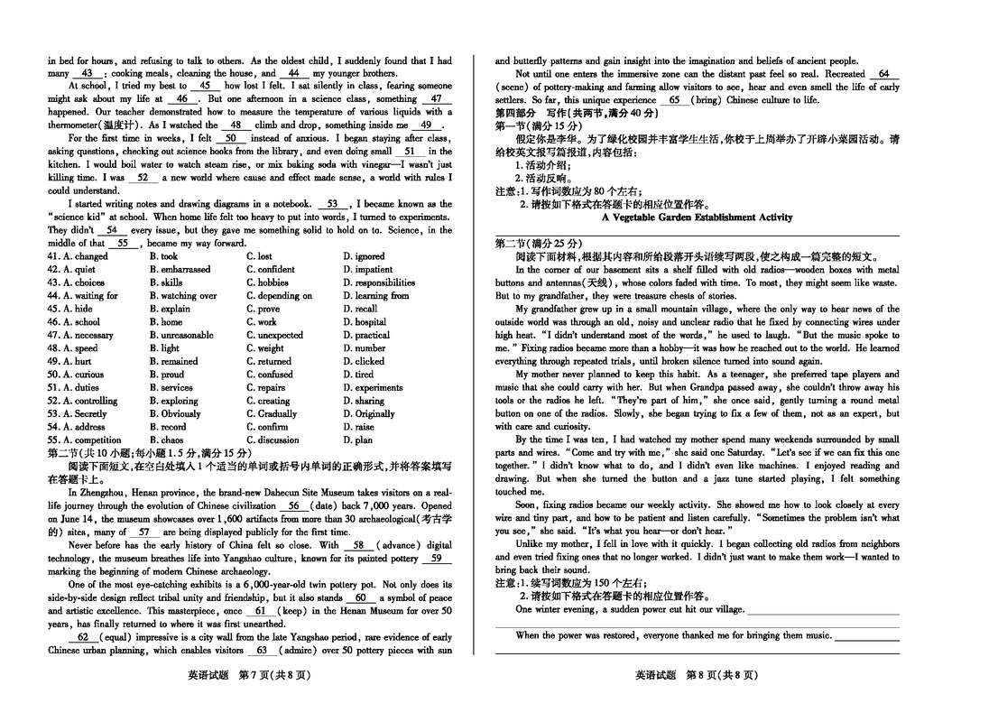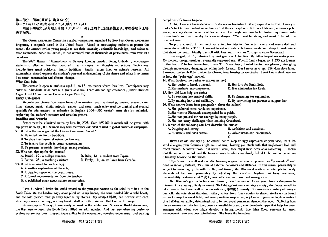 郑州市2025年高三下学期第三次质量预测英语试题质量较高,题型多样,将作为考察考生对相应考点的掌握程度,考后将及时整理试...