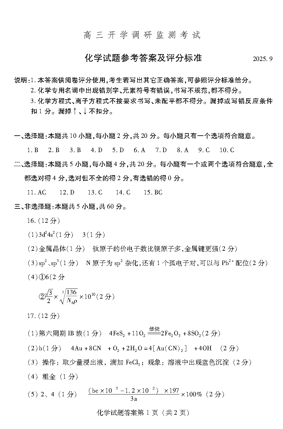 导读山东潍坊2026届高三开学调研监测化学试题质量较高,题型多样,将作为考察考生对相应考点的掌握程度,考后将及时整理试题及答案解析相关信息,以供考生学习交流!化学试题及答案解析