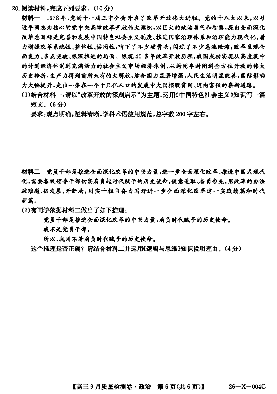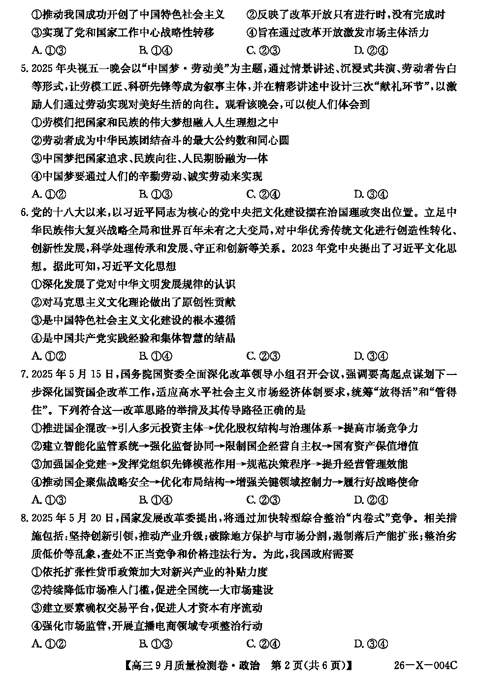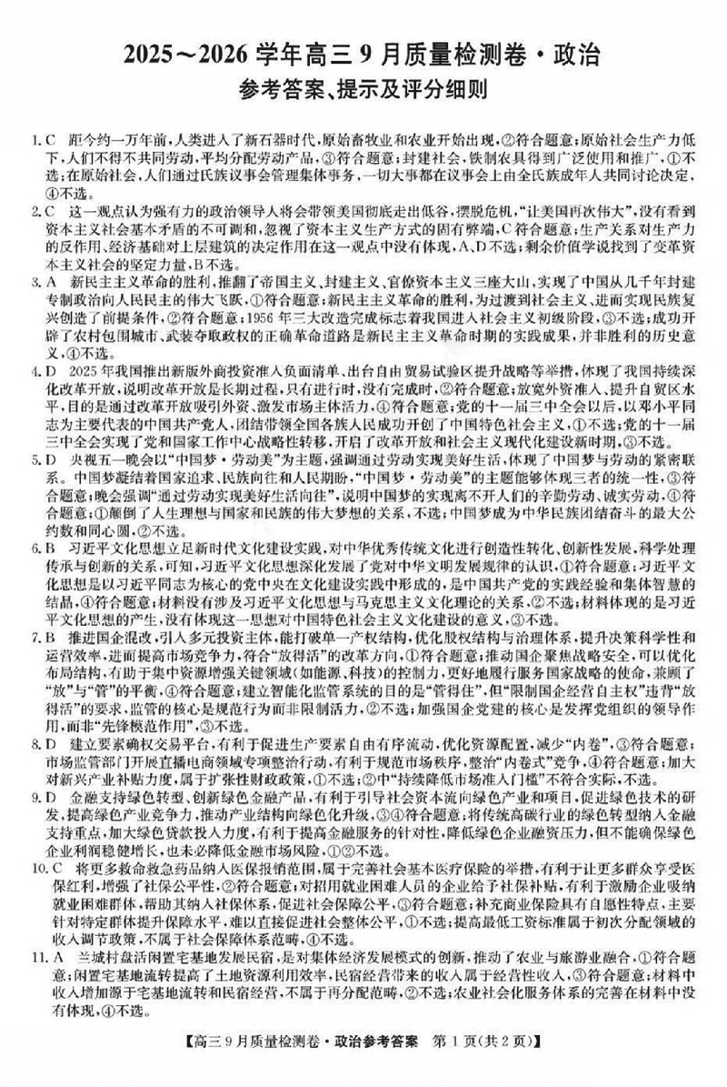 山西三晋卓越联盟2025-2026学年高三9月质检政治试题质量较高,题型多样,将作为考察考生对相应考点的掌握程度,考后将及时整理试题及答案解析相关信息,以供考生学习交流!
