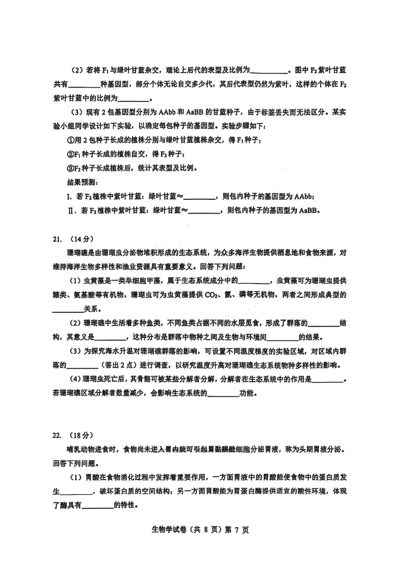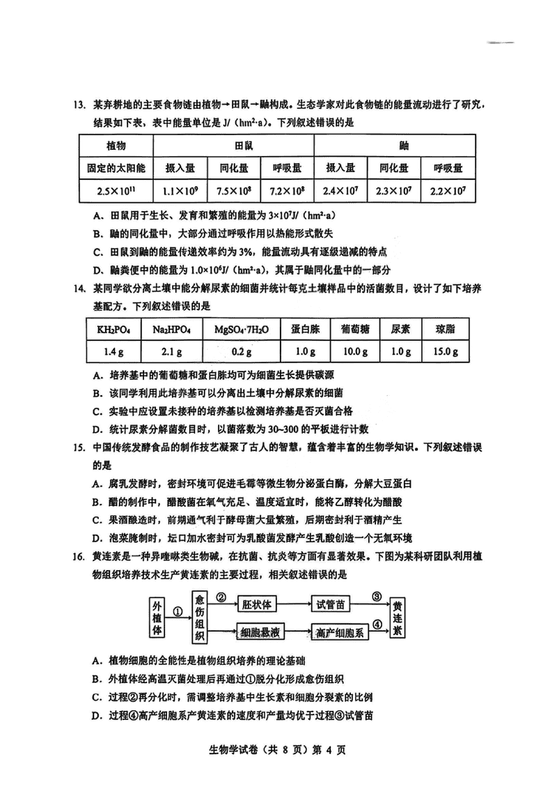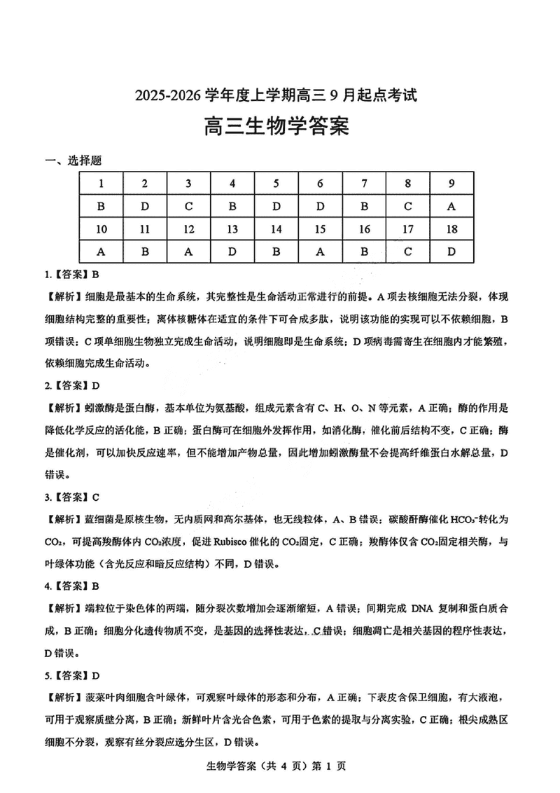 湖北楚天协作体2025-2026学年高三上9月起点生物试题质量较高,题型多样,将作为考察考生对相应考点的掌握程度,考后将及时整理试题及答案解析相关信息,以供考生学习交流!
