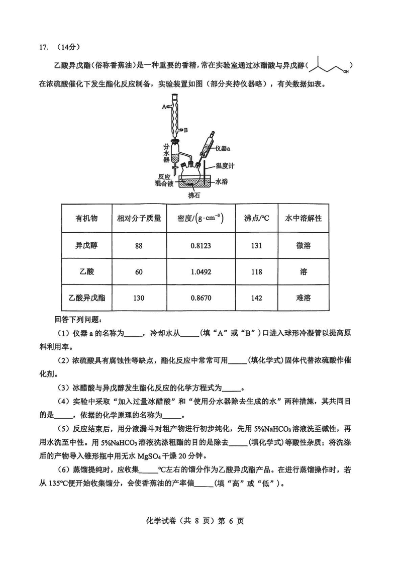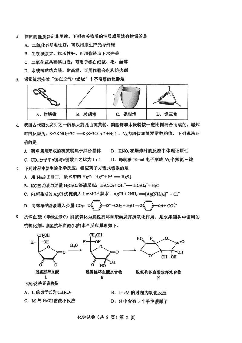 导读湖北楚天协作体2025-2026学年高三上9月起点化学试题质量较高,题型多样,将作为考察考生对相应考点的掌握程度,考后将及时整理试题及答案解析相关信息,以供考生学习交流!化学试题及答案解析