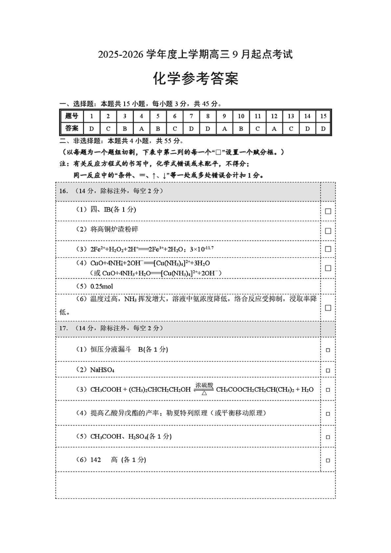 湖北楚天协作体2025-2026学年高三上9月起点化学试题质量较高,题型多样,将作为考察考生对相应考点的掌握程度,考后将及时整理试题及答案解析相关信息,以供考生学习交流!
