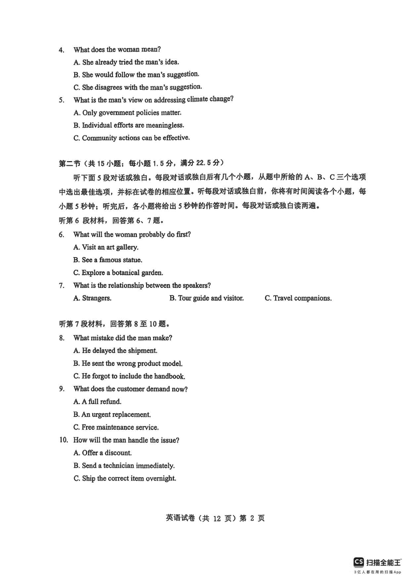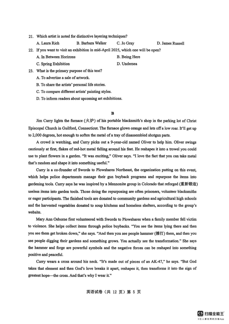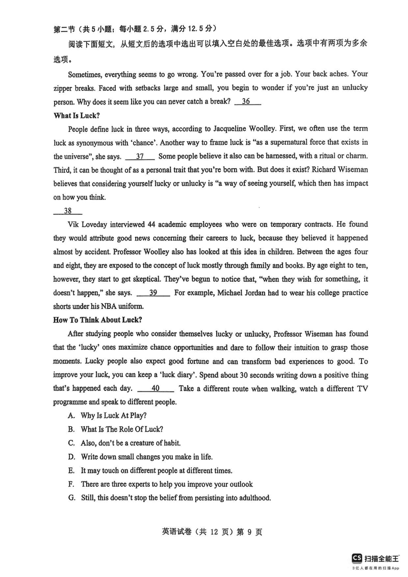 2025年湖北省新八校协作体高三5月联考英语试题质量较高,题型多样,将作为考察考生对相应考点的掌握程度,考后将及时整理试...