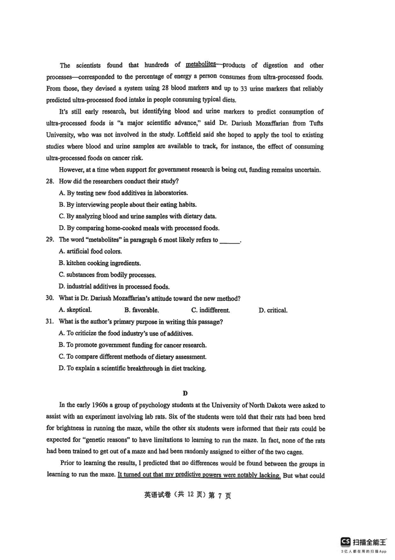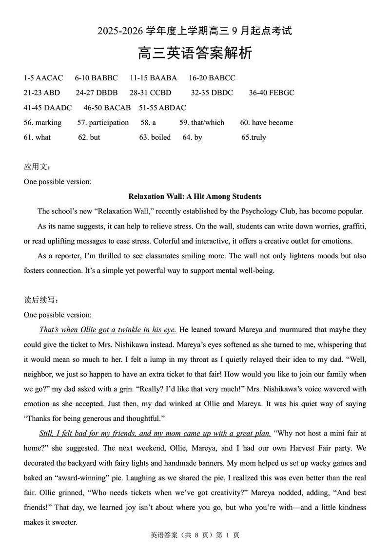 导读湖北楚天协作体2025-2026学年高三上9月起点英语试题质量较高,题型多样,将作为考察考生对相应考点的掌握程度,考后将及时整理试题及答案解析相关信息,以供考生学习交流!英语试题及答案解析