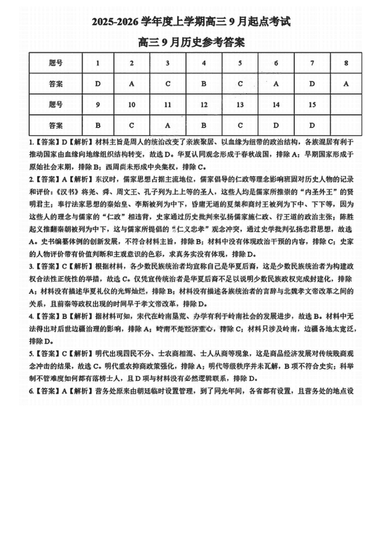 湖北楚天协作体2025-2026学年高三上9月起点历史试题质量较高,题型多样,将作为考察考生对相应考点的掌握程度,考后将及时整理试题及答案解析相关信息,以供考生学习交流!