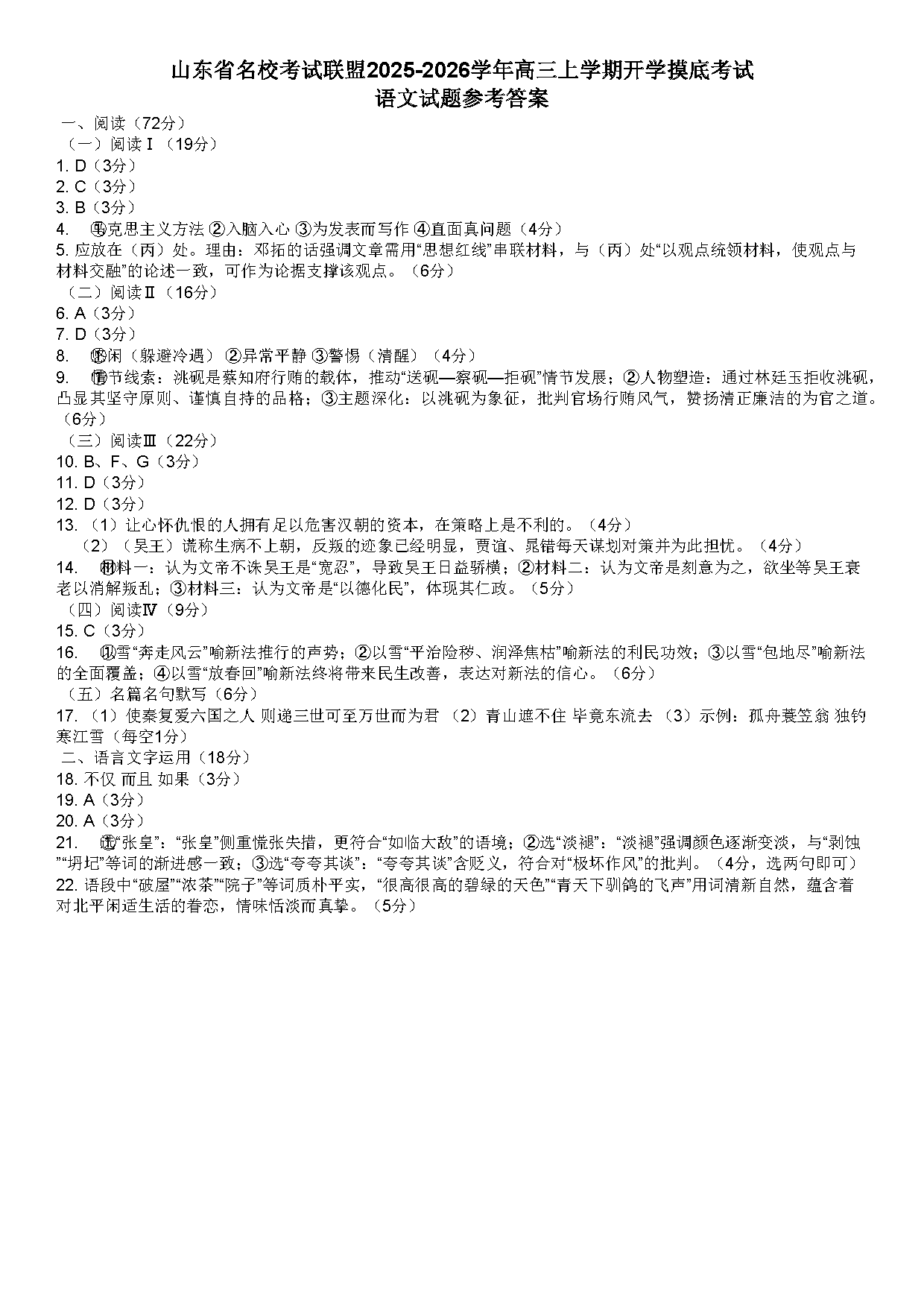 山东名校考试联盟2025-2026学年高三上学期开学摸底语文试题质量较高,题型多样,将作为考察考生对相应考点的掌握程度,考后将及时整理试题及答案解析相关信息,以供考生学习交流!