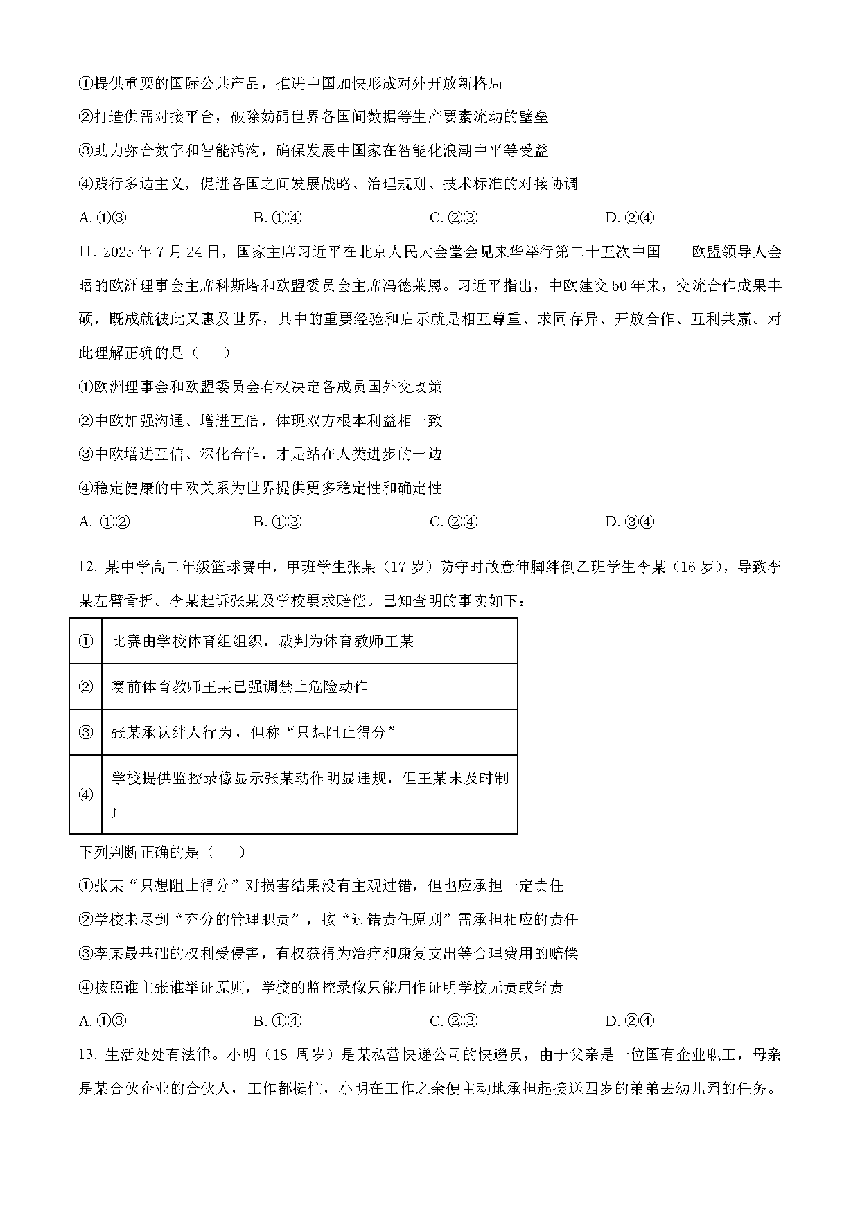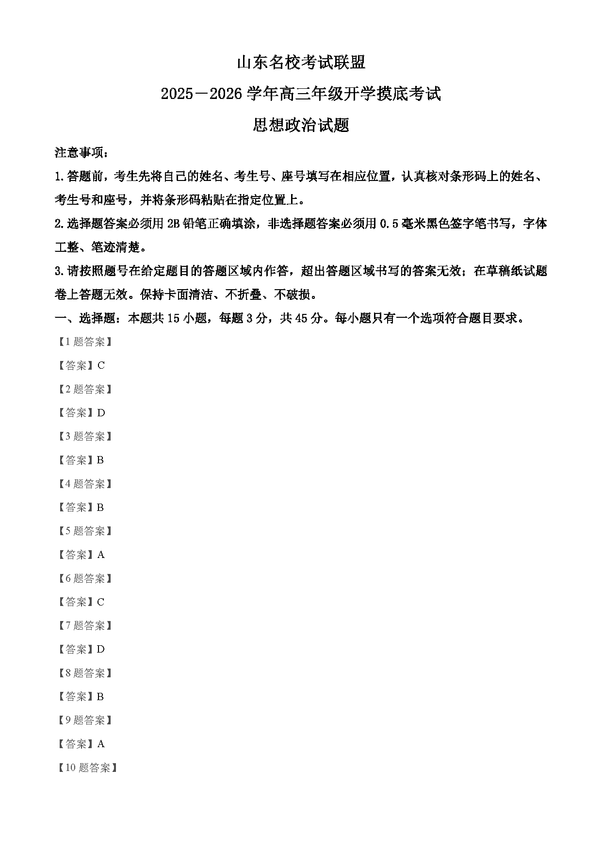 山东名校考试联盟2025-2026学年高三上学期开学摸底政治试题质量较高,题型多样,将作为考察考生对相应考点的掌握程度,考后将及时整理试题及答案解析相关信息,以供考生学习交流!