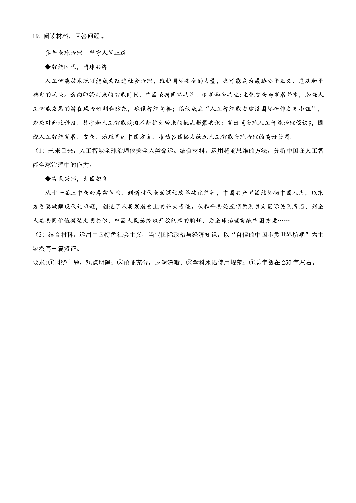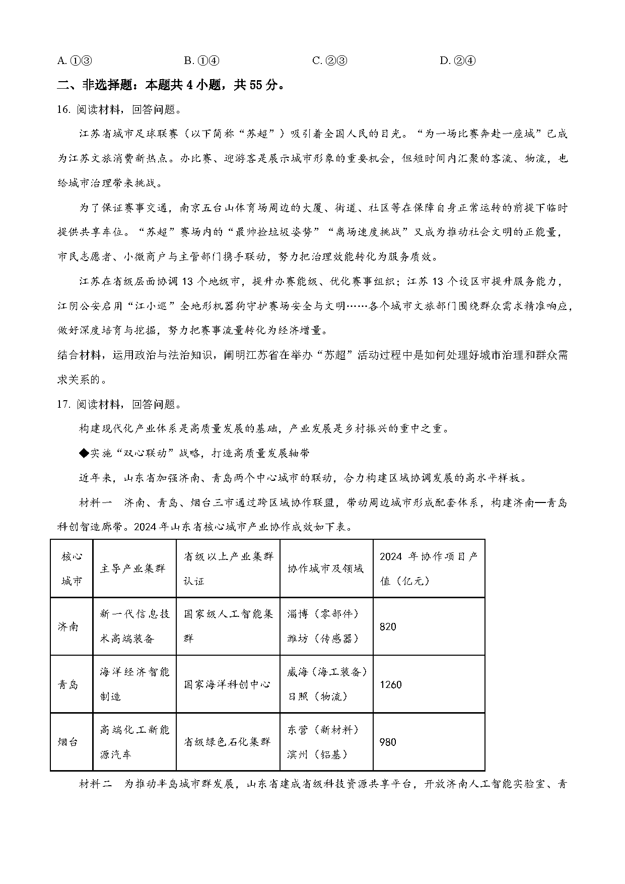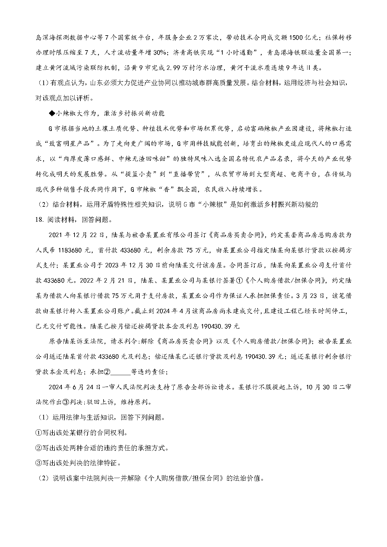 大试题为您提供2025年山东高考政治试卷及参考答案解析...