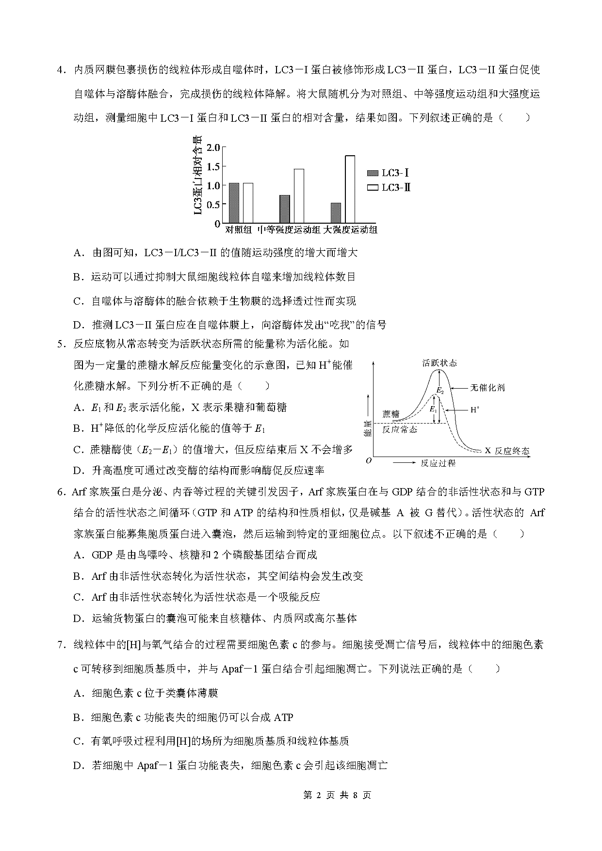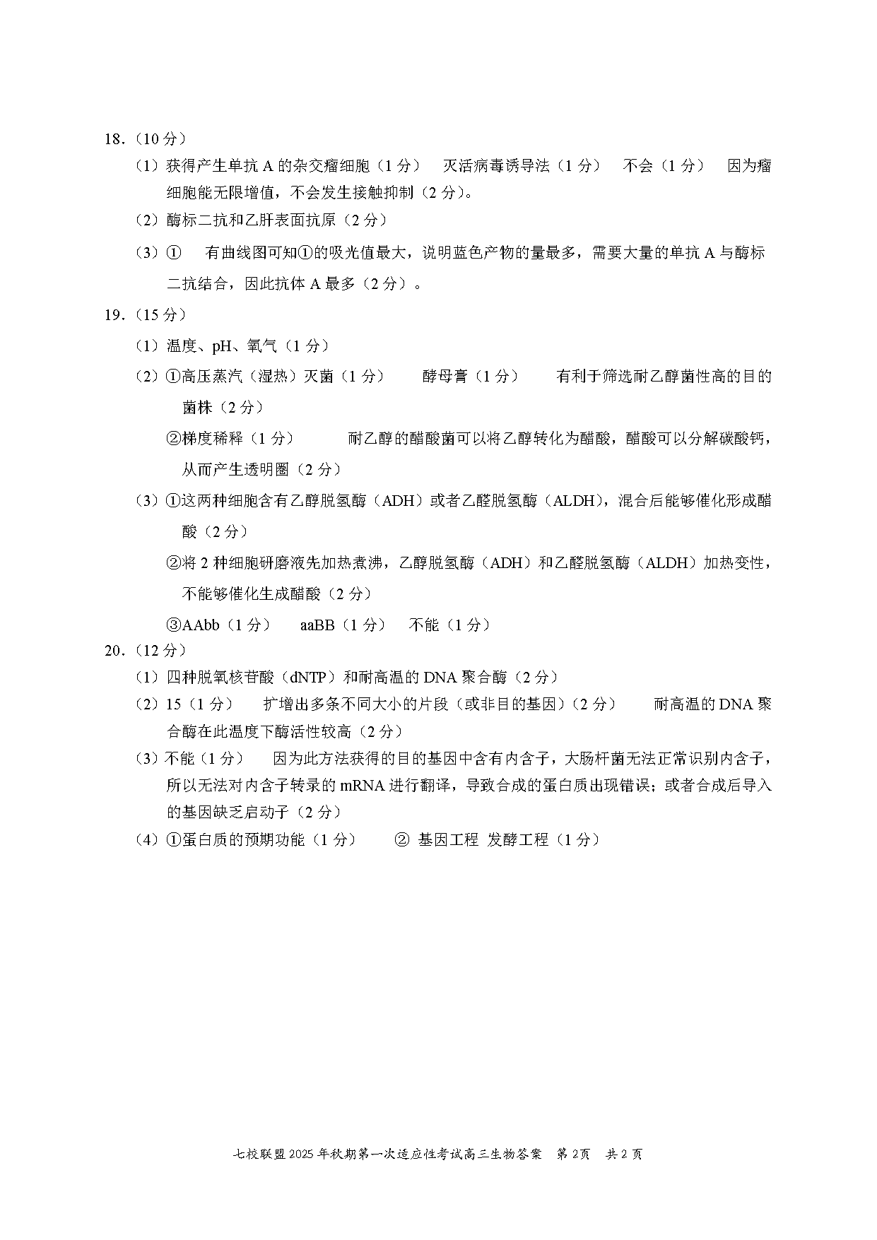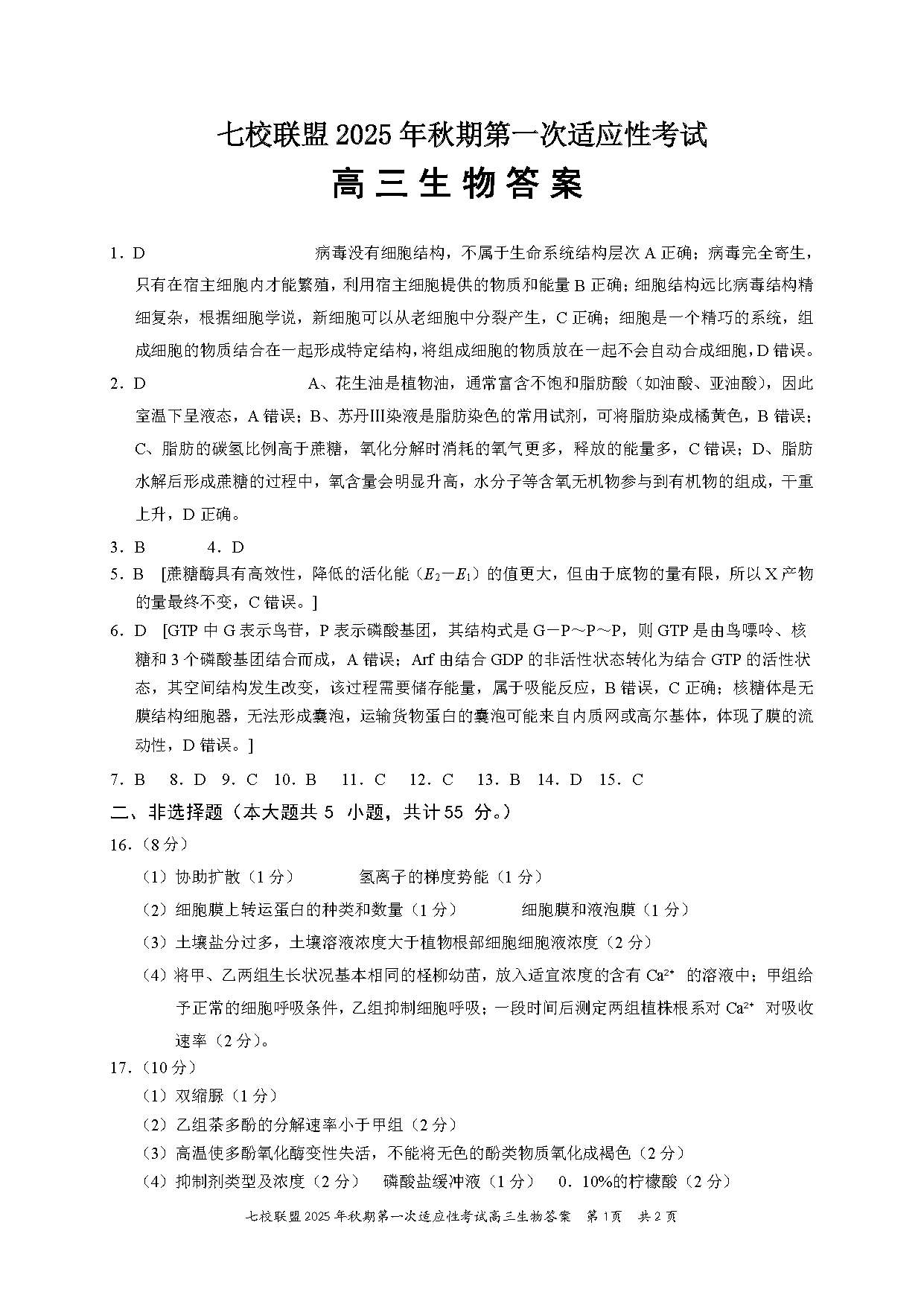 重庆七校联盟2025年高三秋期开学第一次适应性生物试题质量较高,题型多样,将作为考察考生对相应考点的掌握程度,考后将及时整理试题及答案解析相关信息,以供考生学习交流!