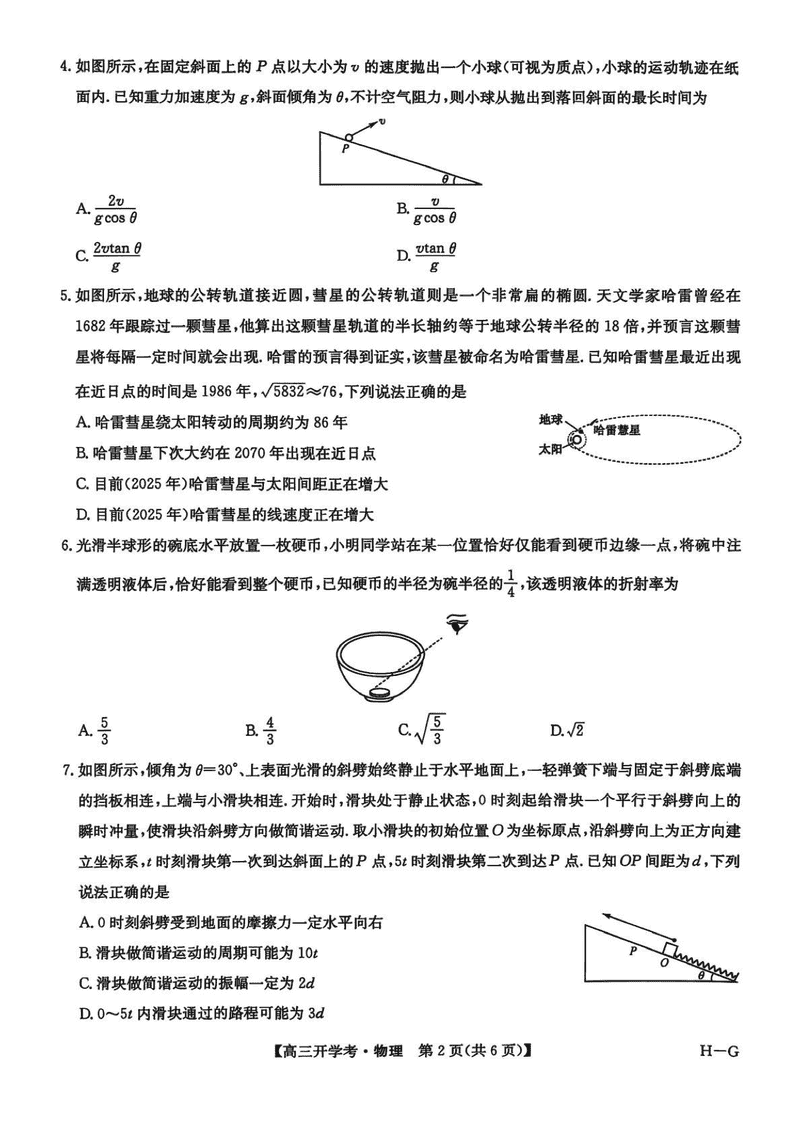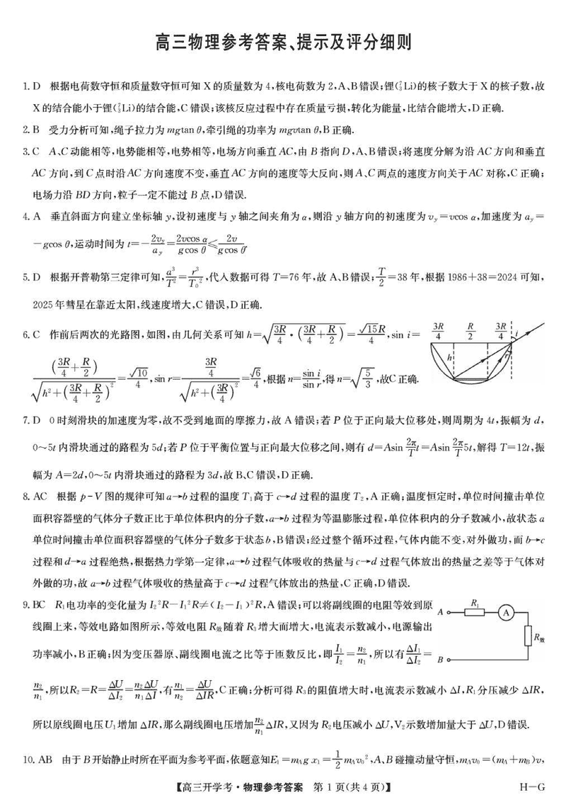 河南天一大联考2025-2026学年高三上学期开学考物理试题质量较高,题型多样,将作为考察考生对相应考点的掌握程度,考后...