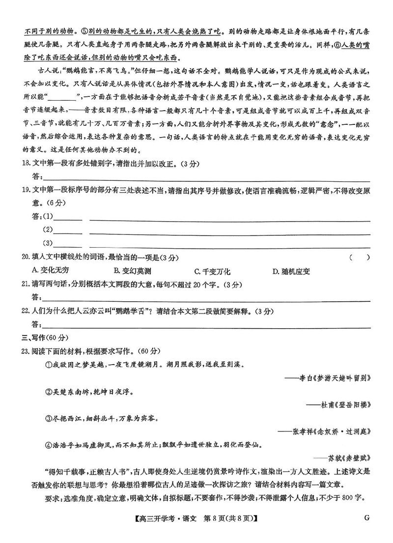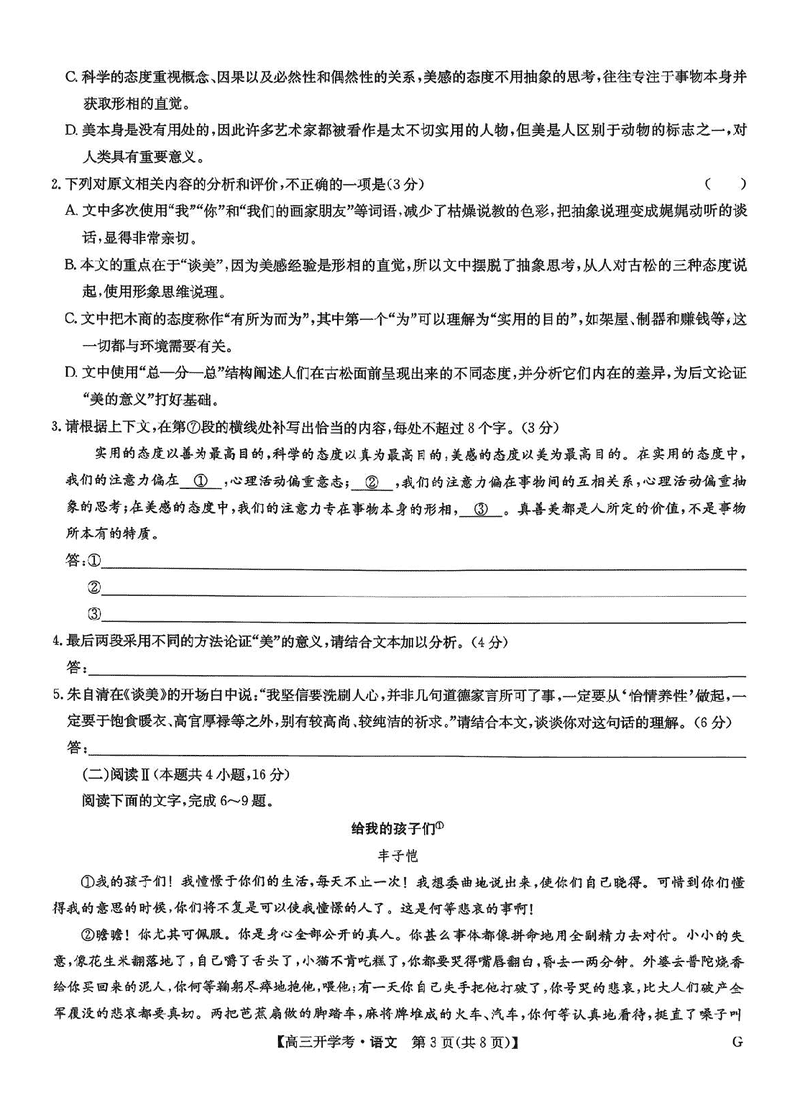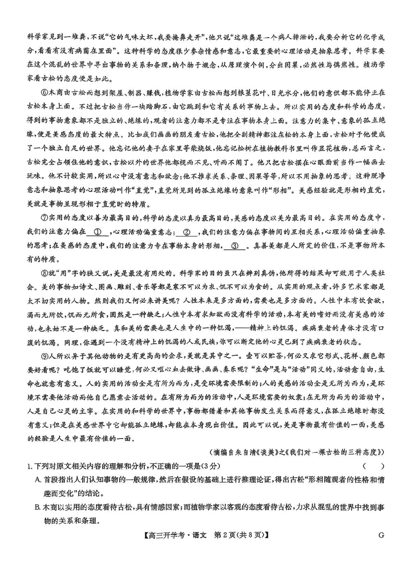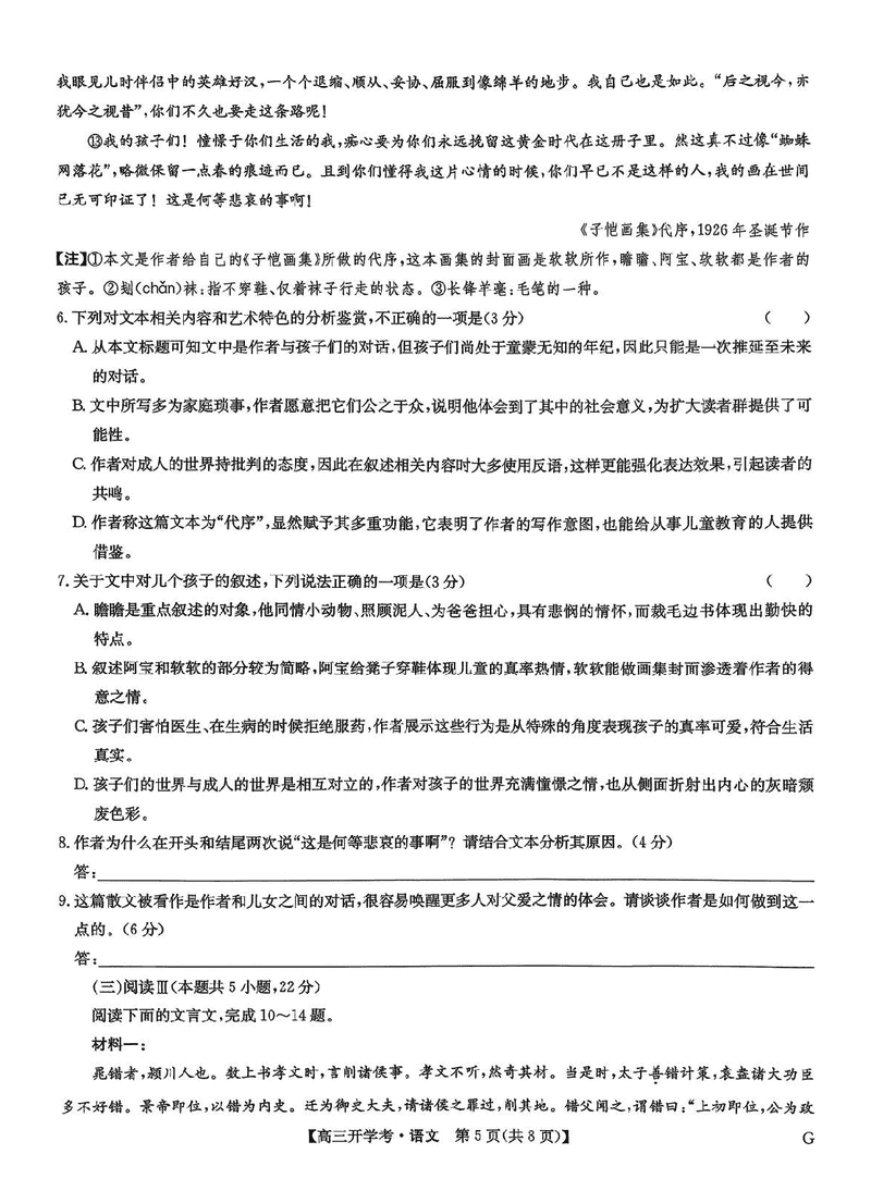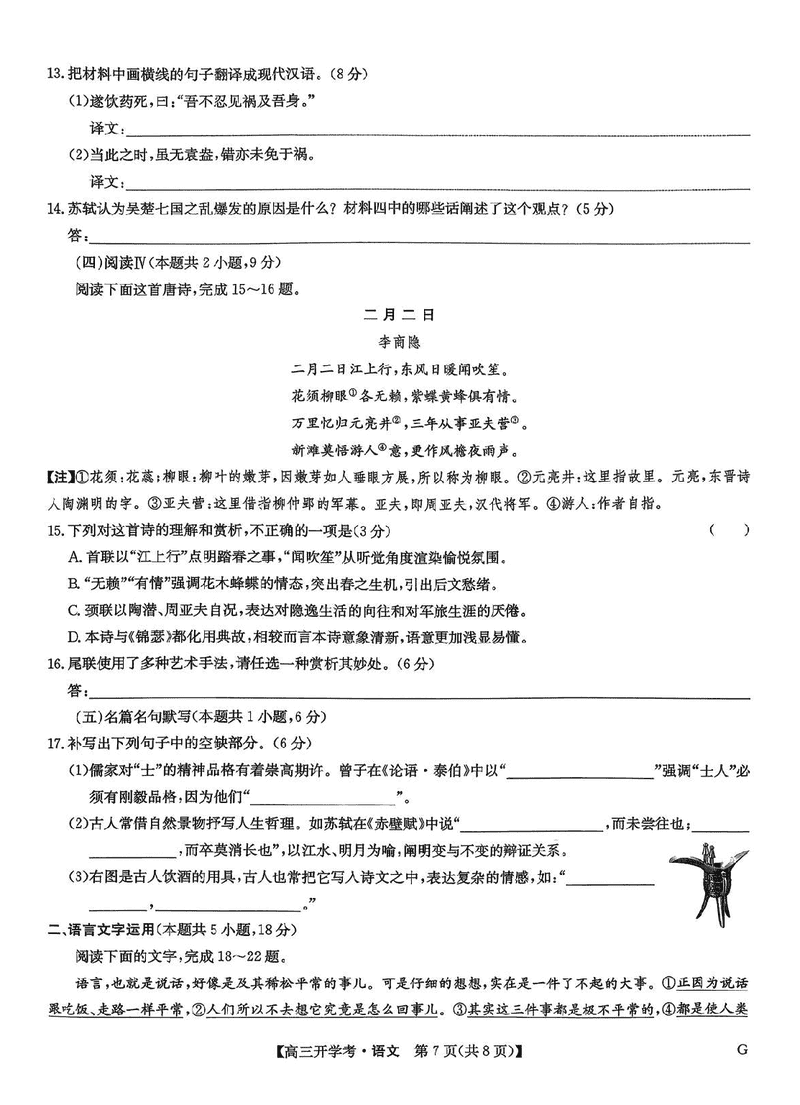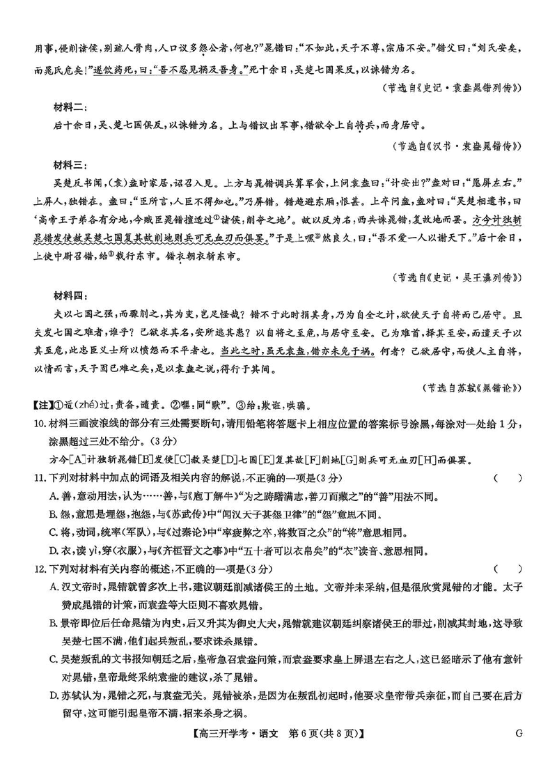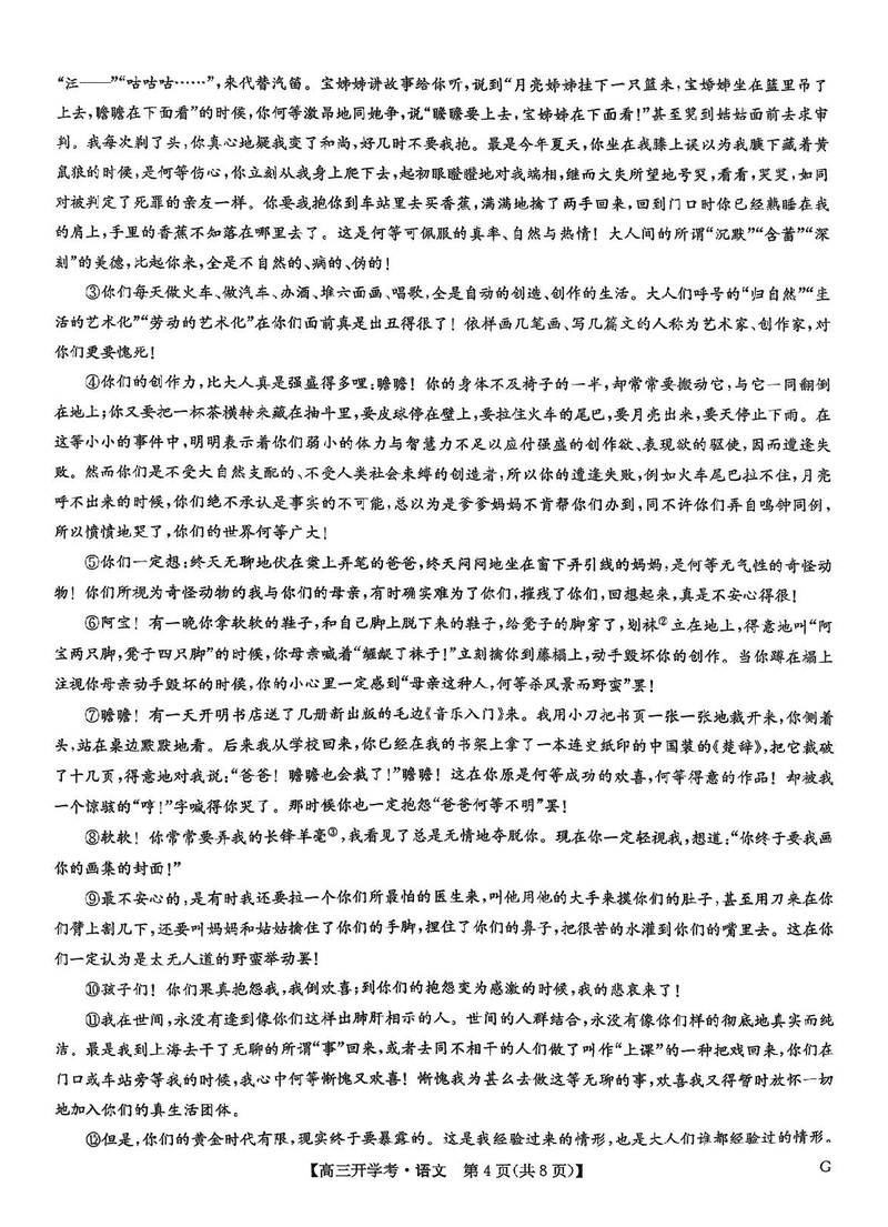 河南天一大联考2025-2026学年高三上学期开学考语文试题质量较高,题型多样,将作为考察考生对相应考点的掌握程度,考后...