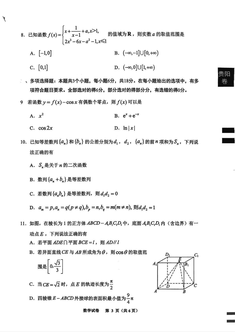 贵阳市、铜仁市2026届高三9月摸底考数学试题质量较高,题型多样,将作为考察考生对相应考点的掌握程度,考后将及时整理试题及答案解析相关信息,以供考生学习交流!