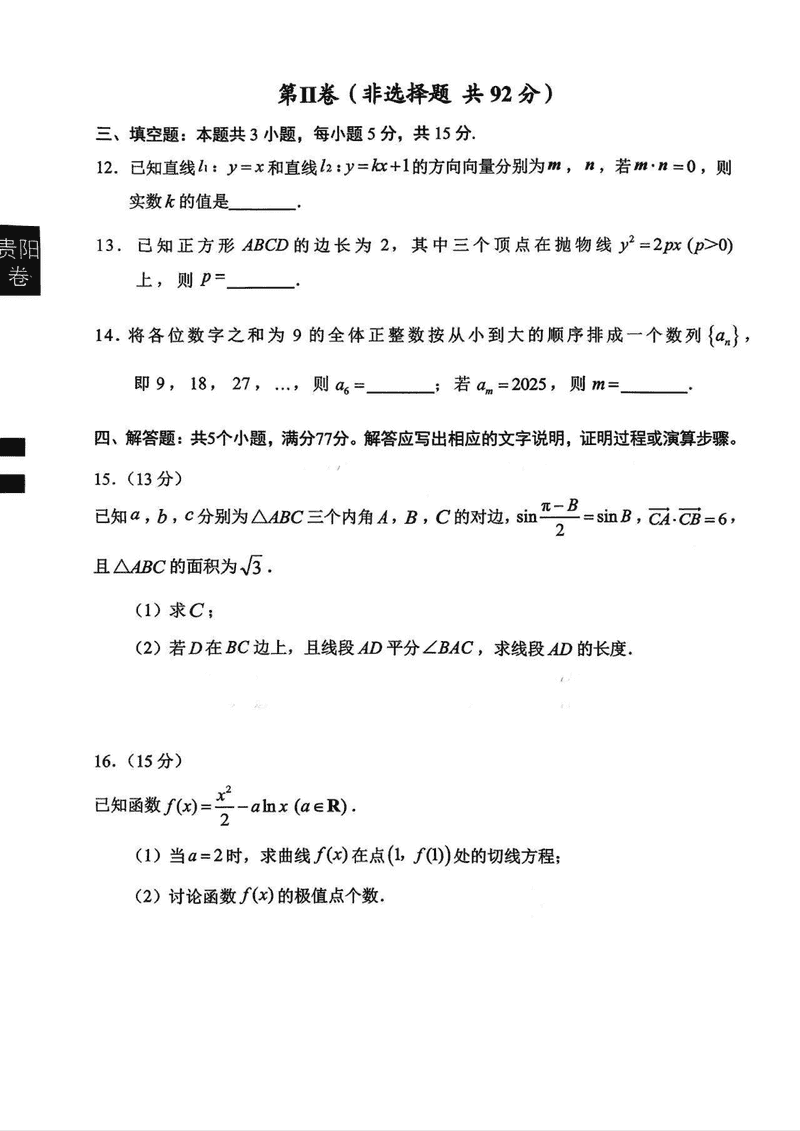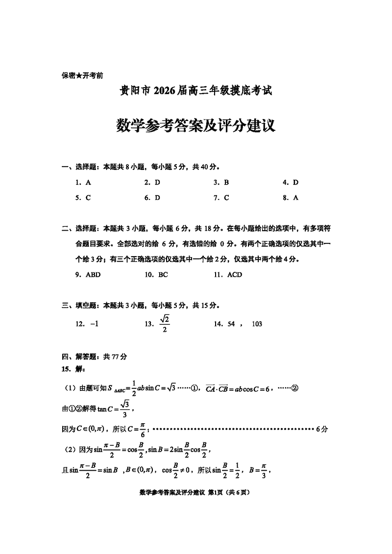 导读贵阳市、铜仁市2026届高三9月摸底考数学试题质量较高,题型多样,将作为考察考生对相应考点的掌握程度,考后将及时整理试题及答案解析相关信息,以供考生学习交流!数学试题及答案解析