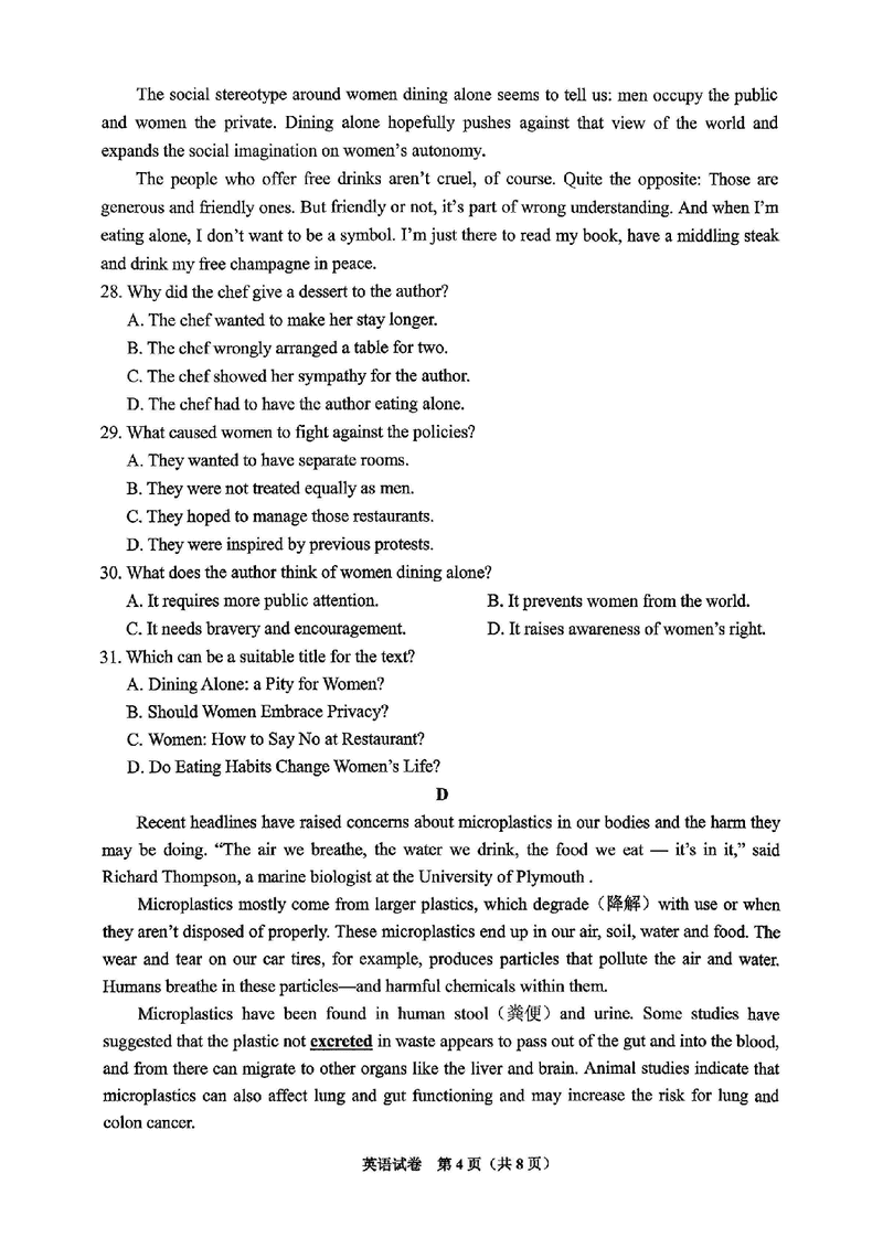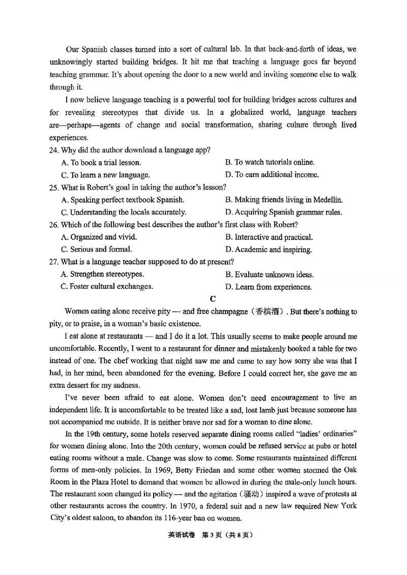 贵阳市七校2025届高三下学期联考(三)英语试题质量较高,题型多样,将作为考察考生对相应考点的掌握程度,考后将及时整理试...