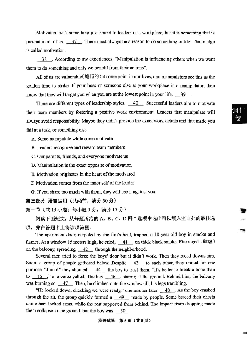 贵阳市、铜仁市2026届高三9月摸底考英语试题质量较高,题型多样,将作为考察考生对相应考点的掌握程度,考后将及时整理试题及答案解析相关信息,以供考生学习交流!