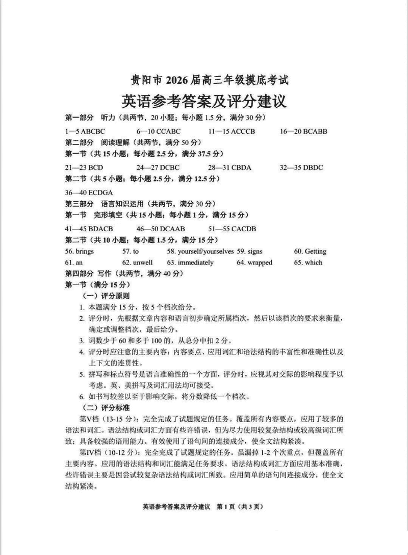 导读贵阳市、铜仁市2026届高三9月摸底考英语试题质量较高,题型多样,将作为考察考生对相应考点的掌握程度,考后将及时整理试题及答案解析相关信息,以供考生学习交流!英语试题及答案解析