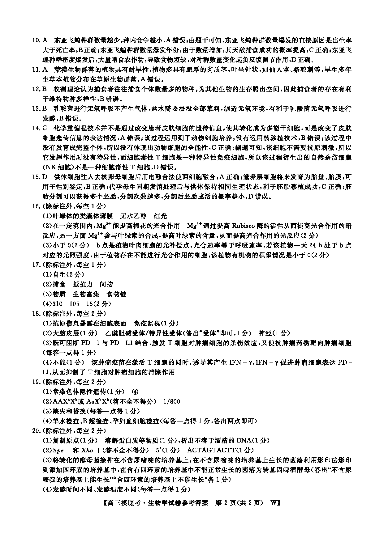皖南八校2026届高三上学期8月摸底大联考生物试卷及参考答案